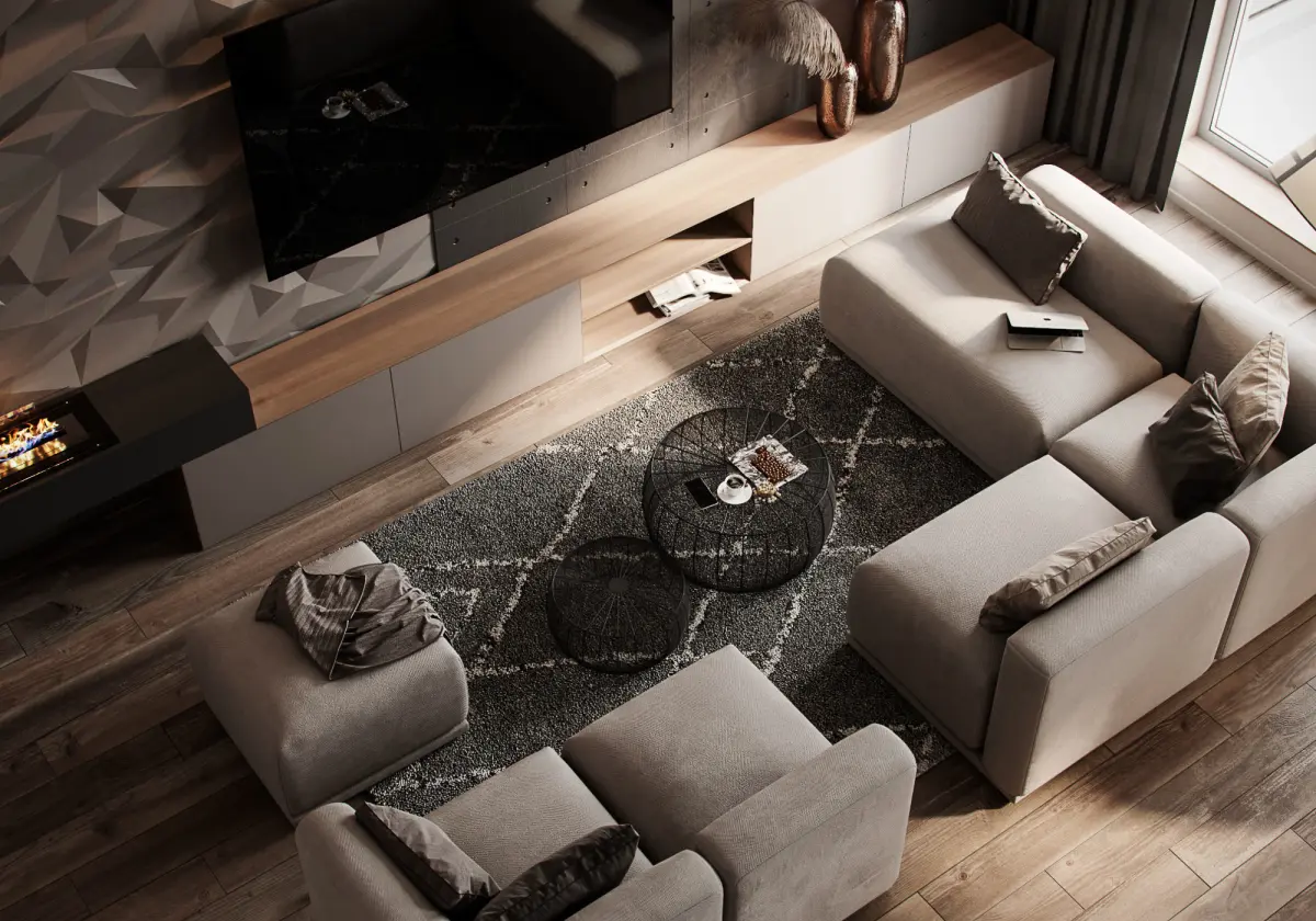 The archive contains a fully textured kitchen-living room, hallway, corridor interior scene with natural light setup, ready to render with Corona Renderer for 3ds MAX. Inside the zip file you'll find more than 50 materials, 269 textures, Corona Sun setup, 17 cameras settings (2 of them with depth of field), Corona render settings. Including OBJ, 3DS model export files with UVW Map.Polys: 5 430 750Verts: 4 775 854The scene also contains a frozen plan for the arrangement of furniture in splines. The missing rooms of the bathroom, bedroom, nursery and balcony will soon appear!)