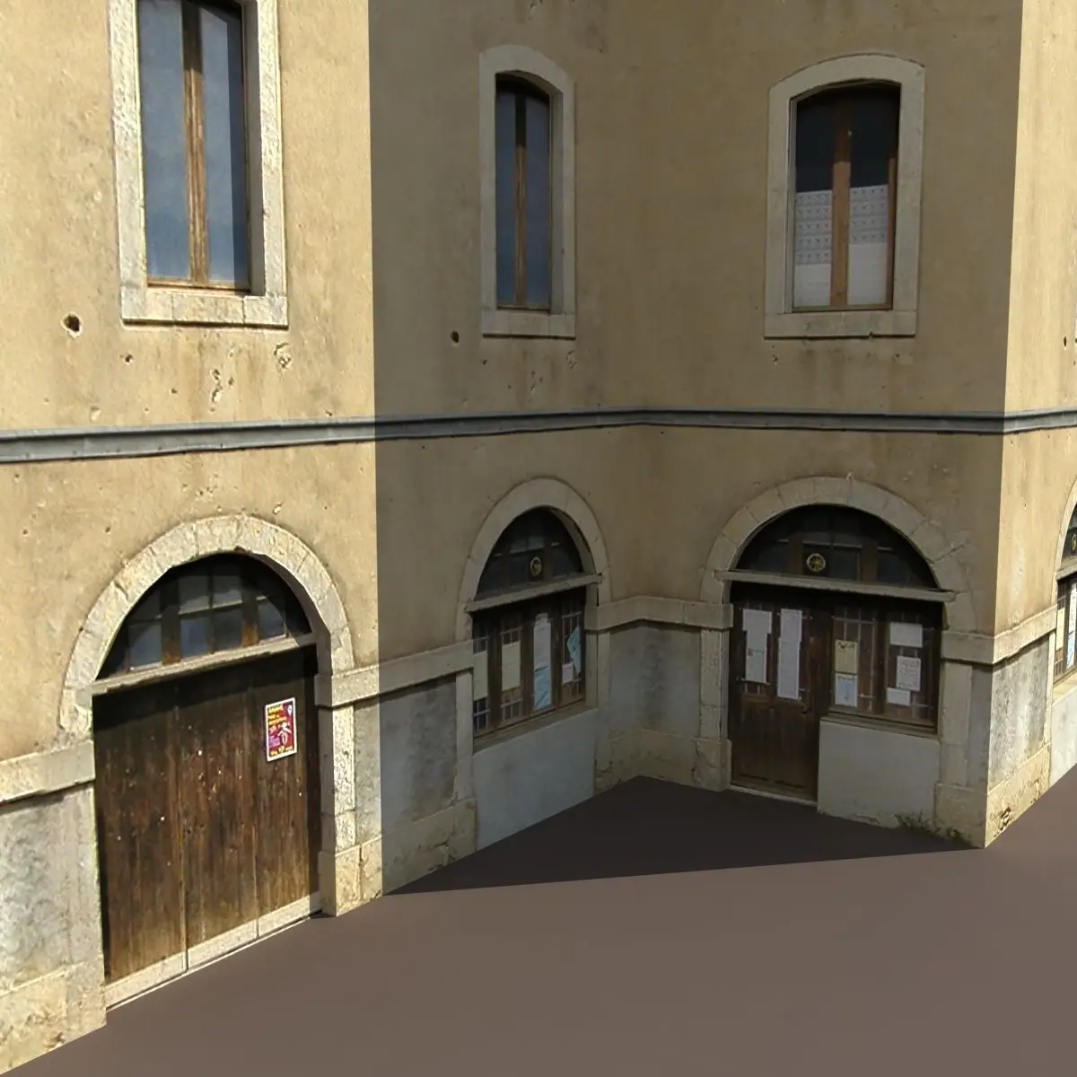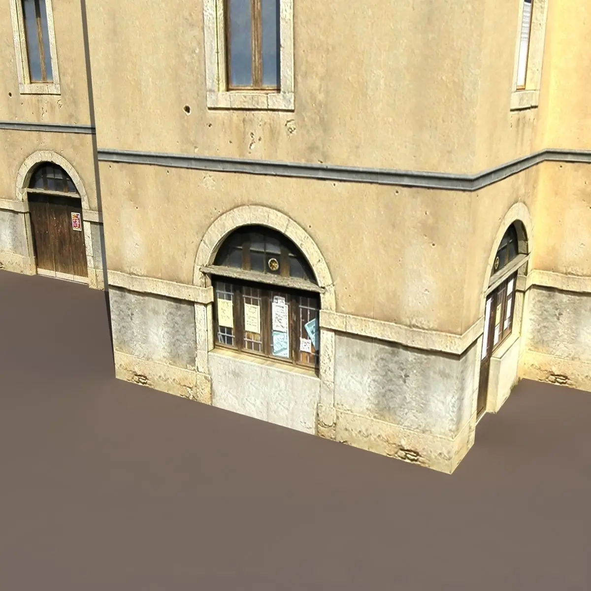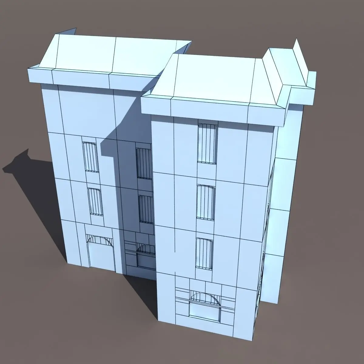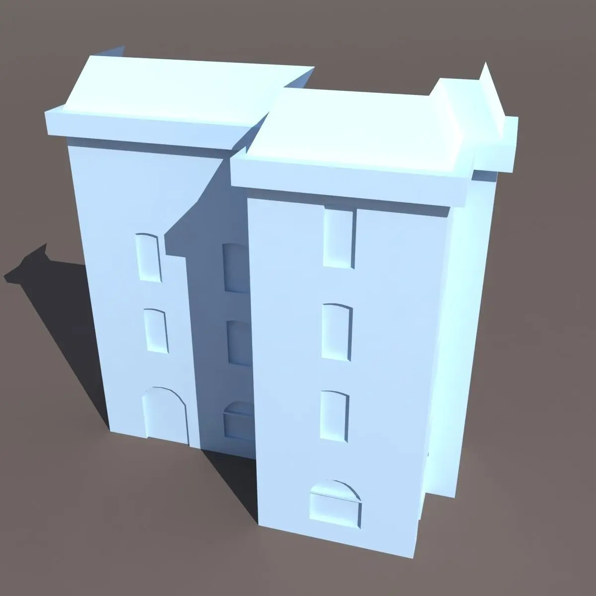 A 3D model of a low poly building. Exterior only, no interior.