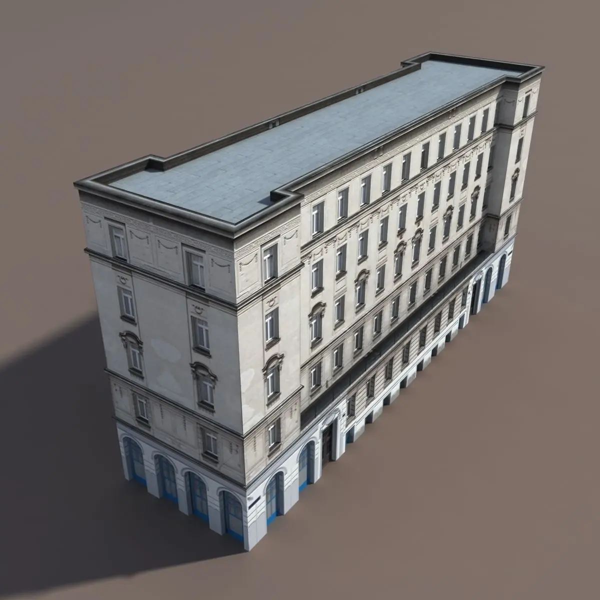 A 3D model of a low poly building. Exterior only, no interior.