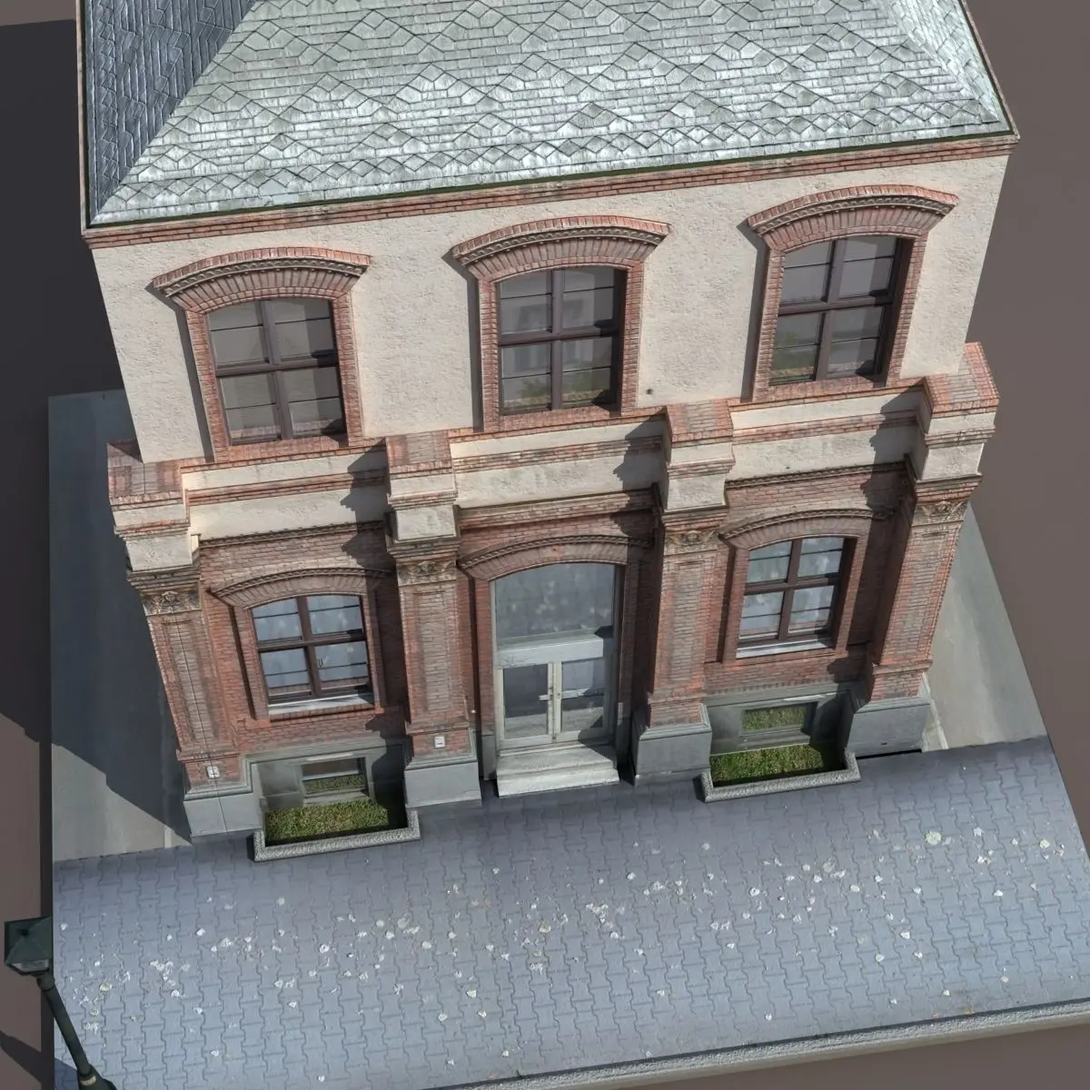 A 3D model of a low poly neoclassical building. Exterior only, no interior.