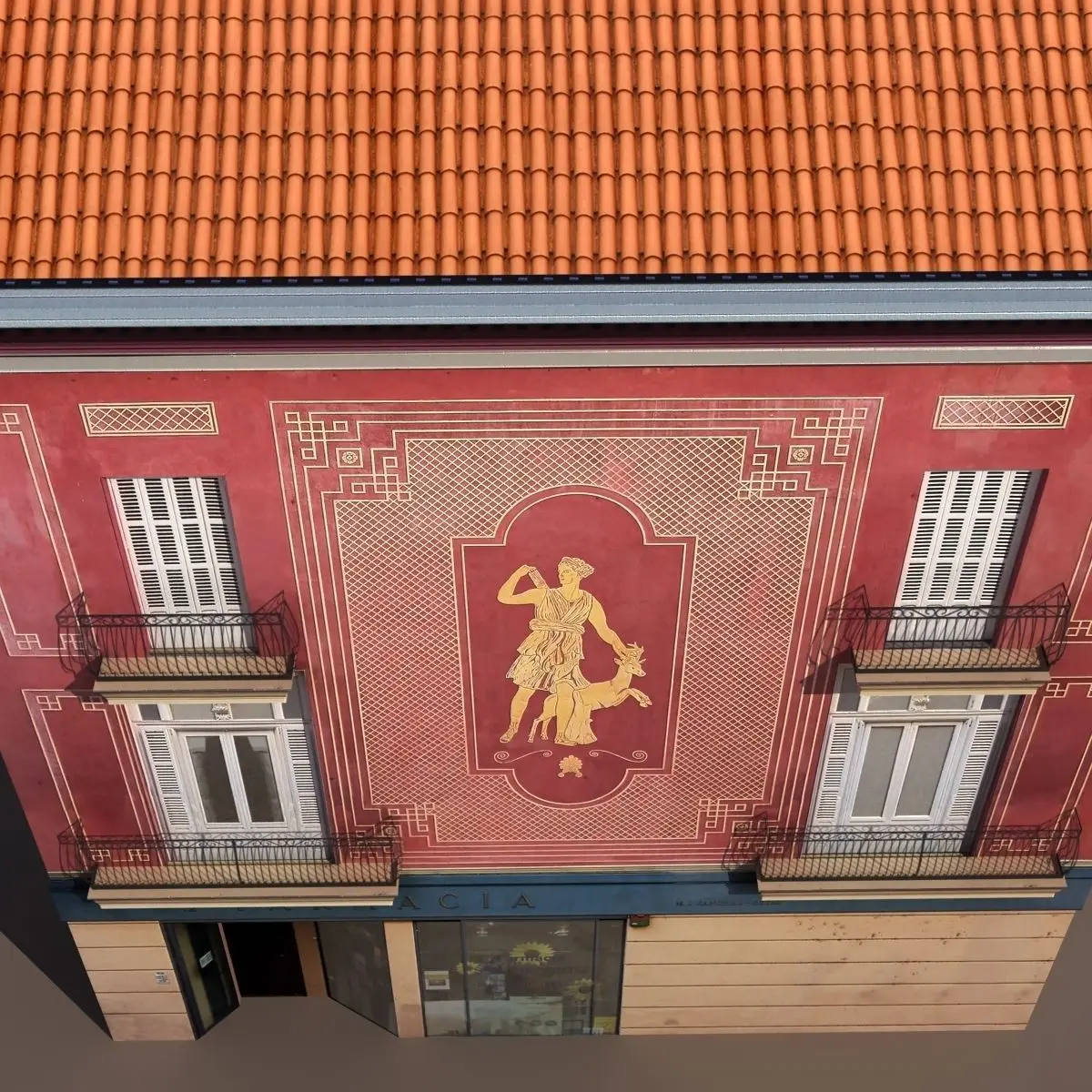 A 3D model of a low poly building. Exterior only, no interior.
