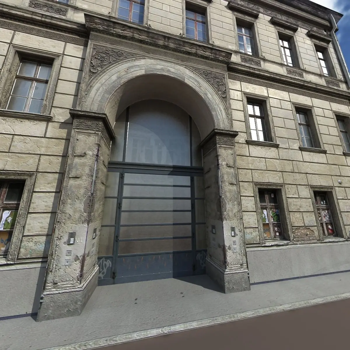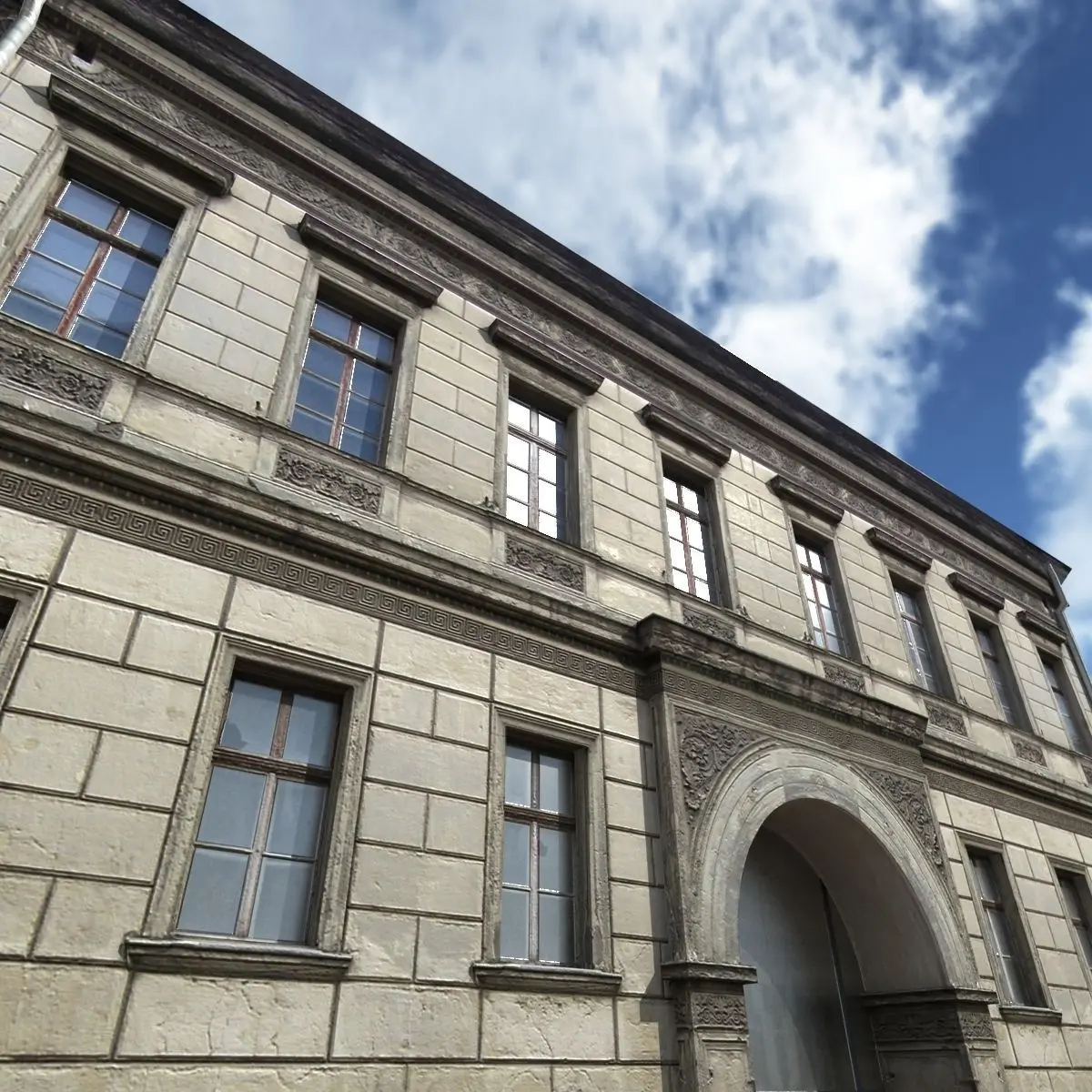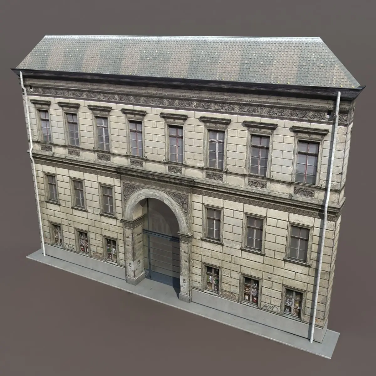 A 3D model of a low poly neoclassical building. Exterior only, no interior.
