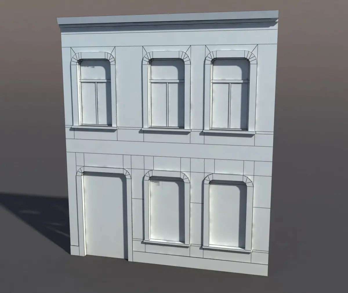 A 3D model of a low poly building. Exterior only, no interior.