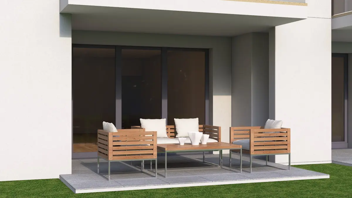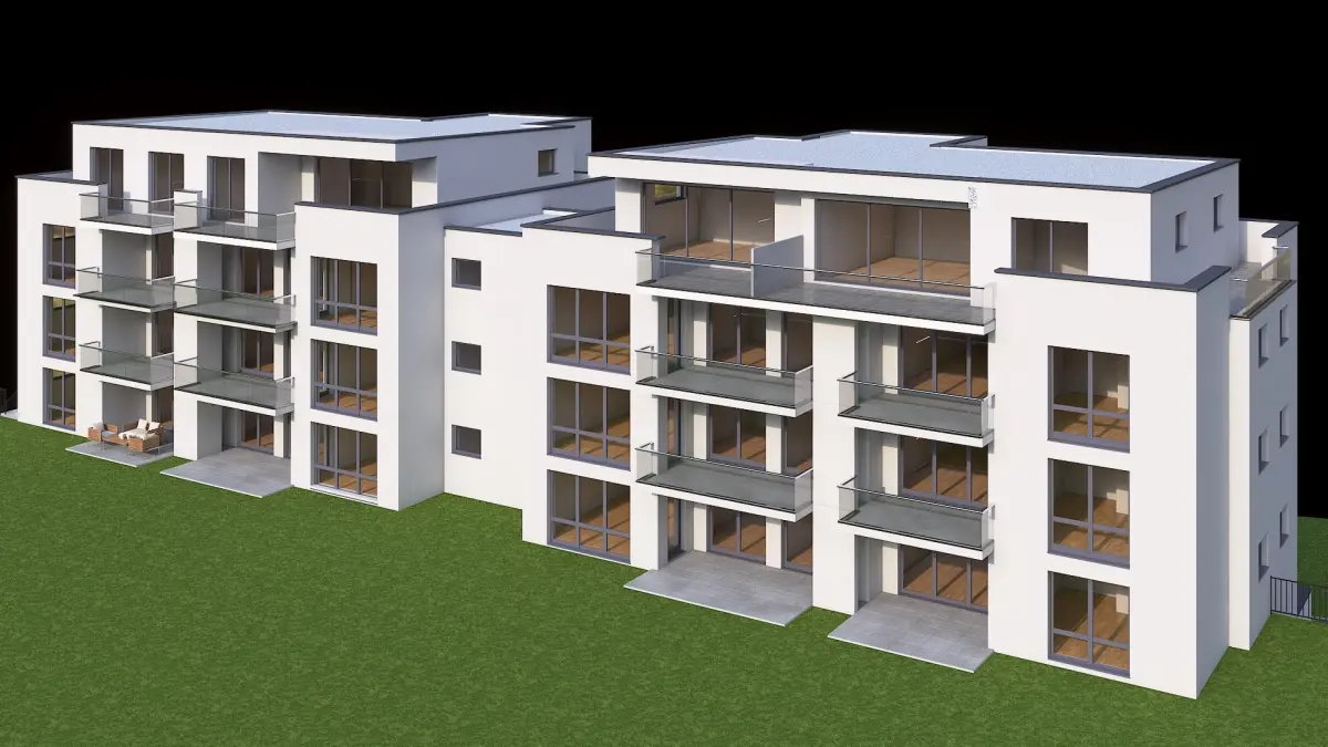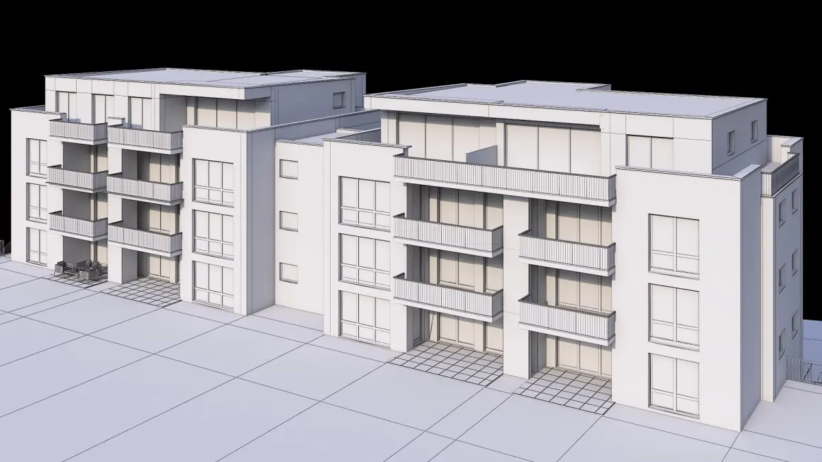 High detailed 3D model of a realistic contemporary apartment building.