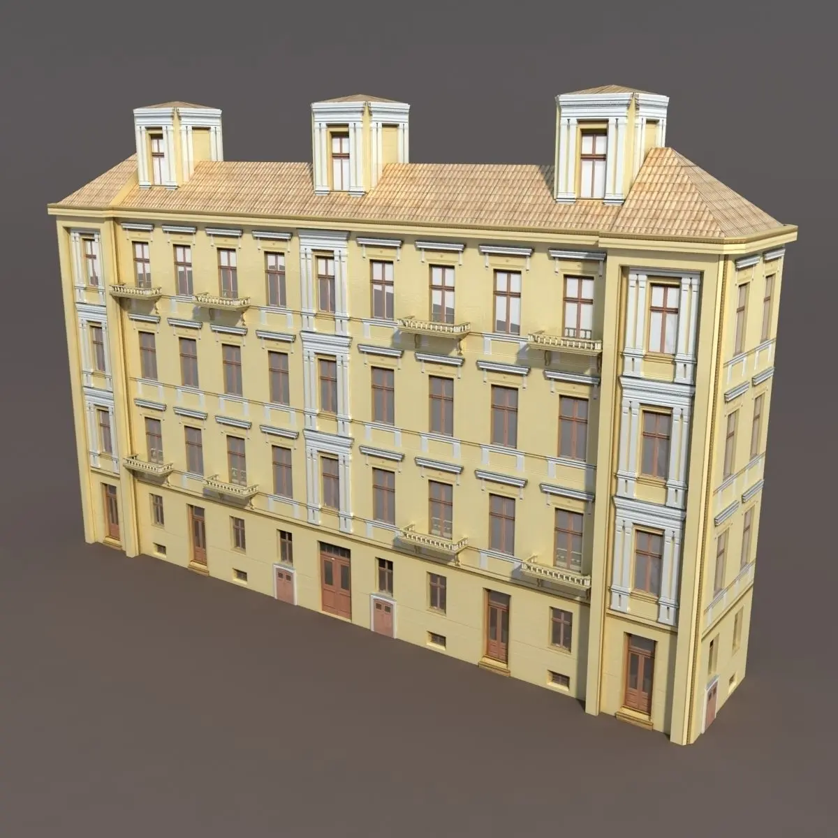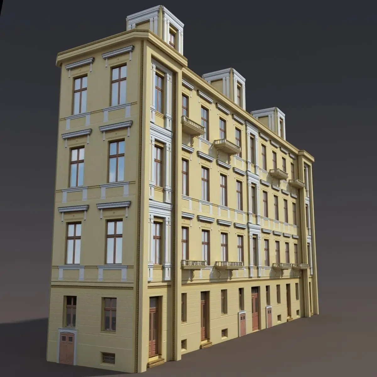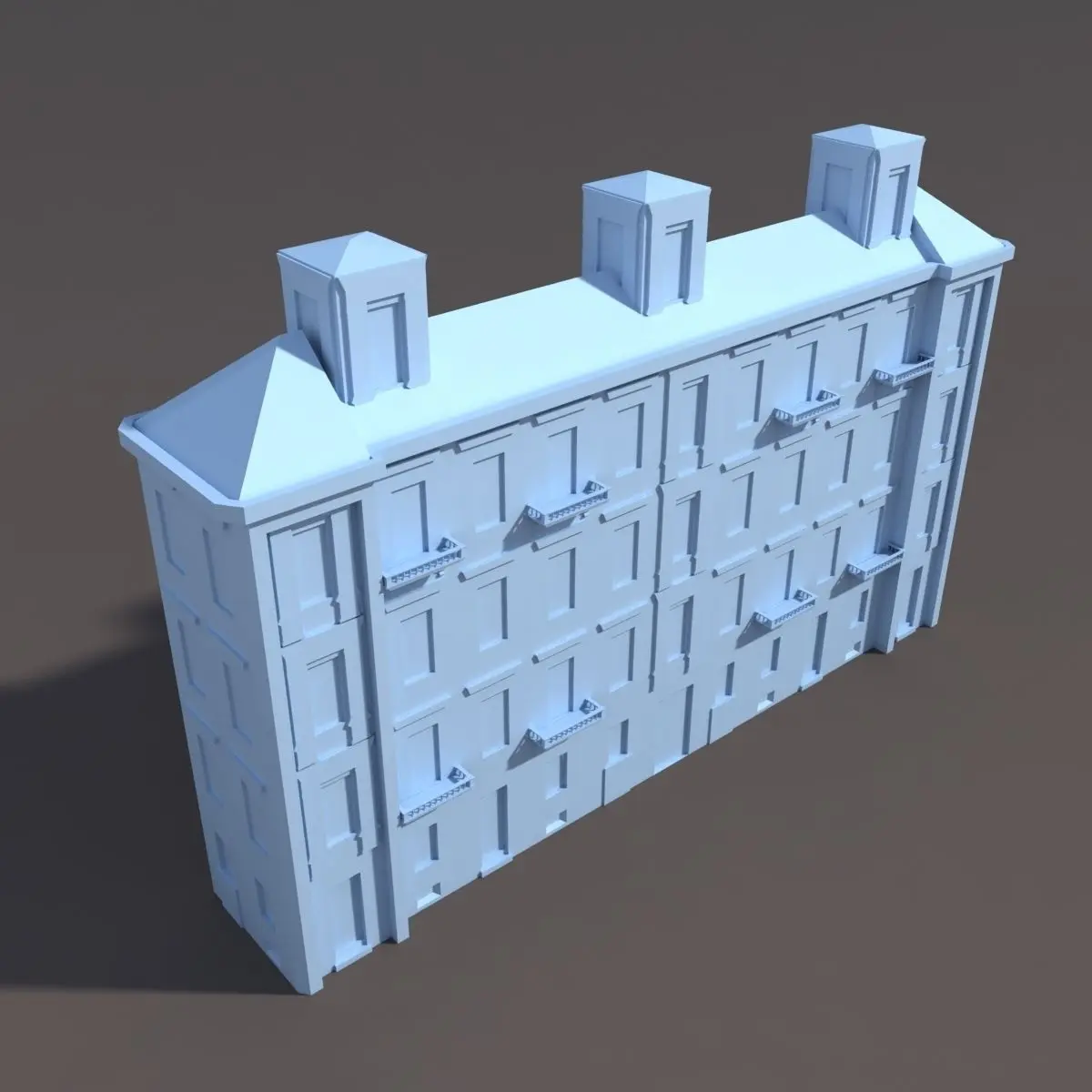 A 3D model of a low poly neoclassical building. Exterior only, no interior.