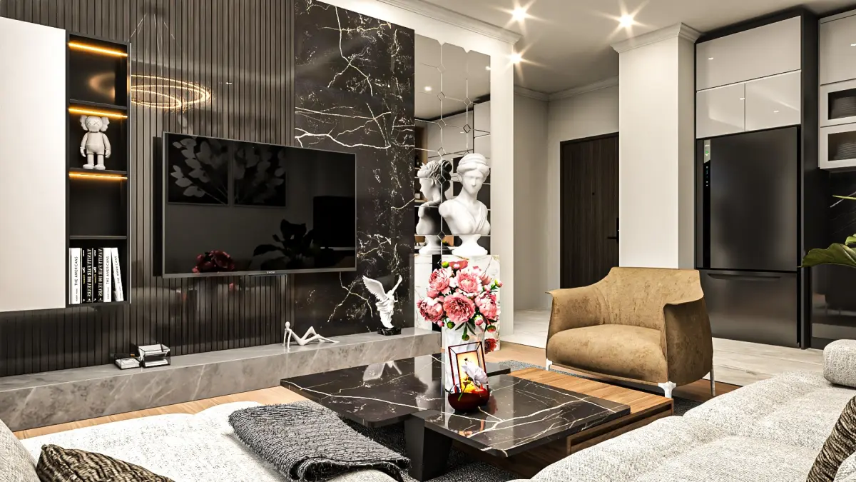 1+1 apartment desıng sketchup vray ready 3ds formatlıvıng room desıngbedroom desıngbathroom desıngsketchup model texture