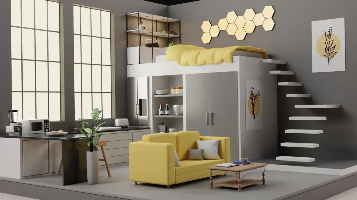 Apartment isometric 3D interior. Cozy style room. Made in Blender 4.1. Rendered by Cycles. Also available formats to download: obj, stl, fbx and dae (collada).All assets and used textures archived inside the artwork. Procedural materials.Hope you like it!