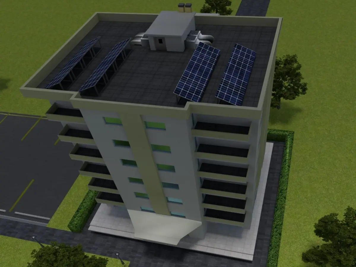 DescriptionApartment building fully equipped. with all kinds of details as I could see on the roof. Free nodes were used. so you can easily modify the textures or the color of each part of the building.Note that to not accounted for. the decorative elements of the street. as lampposts, trees and the ground.=====================================================================================Cameras, lights, render settings