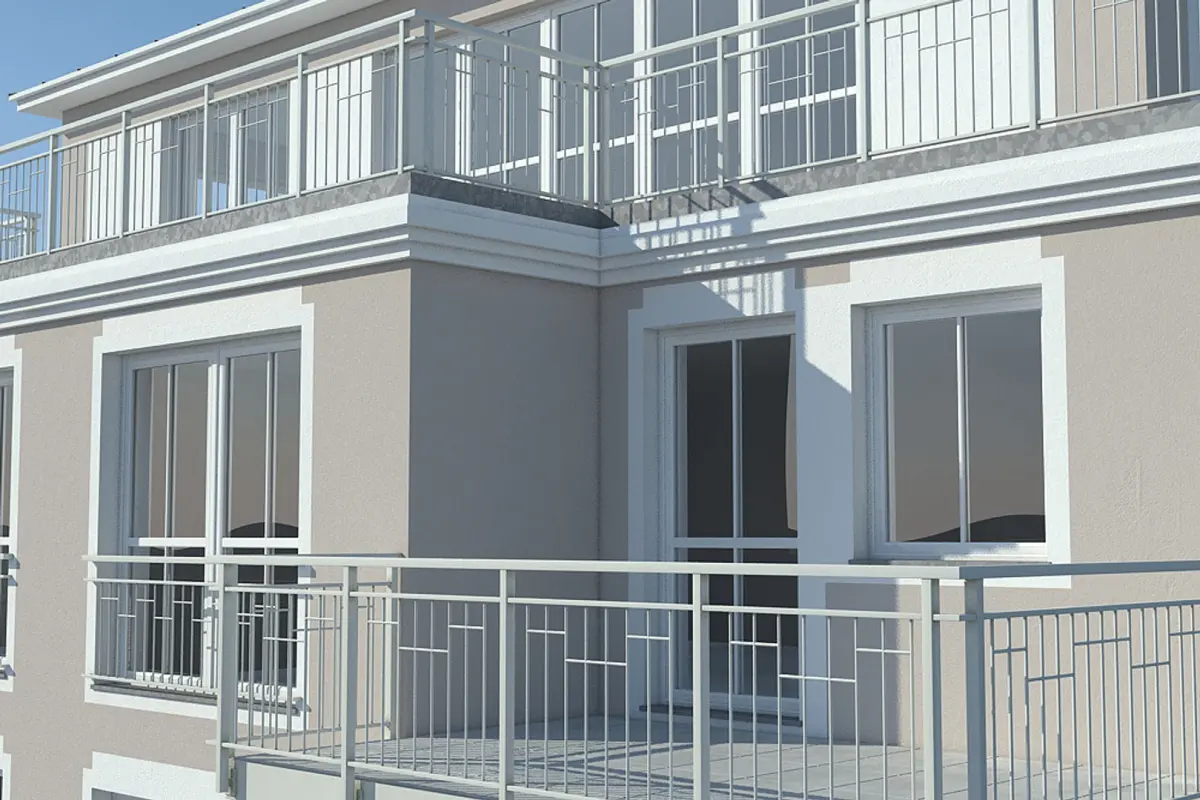 - Detailed balcony railing - see closeup renderings
