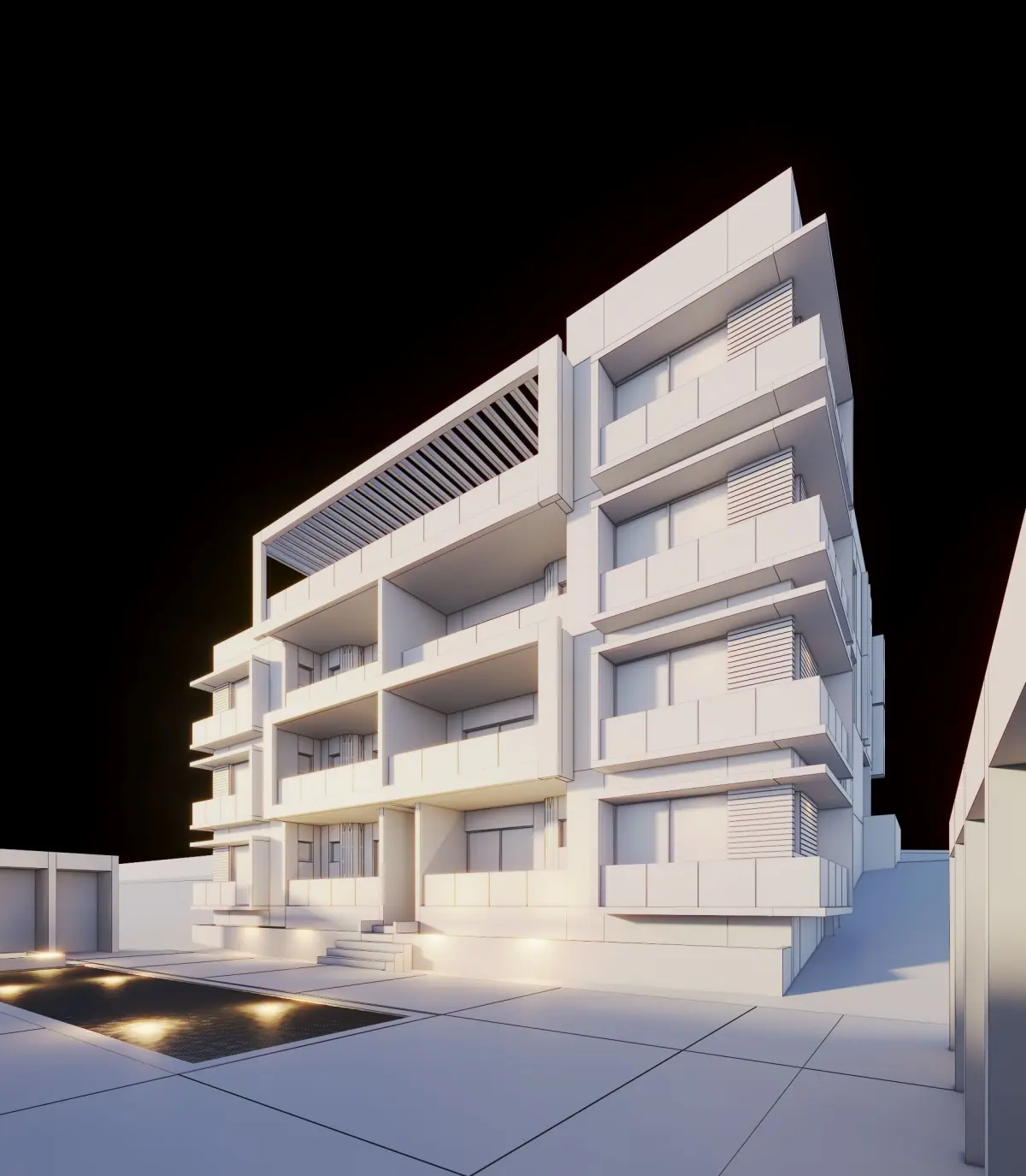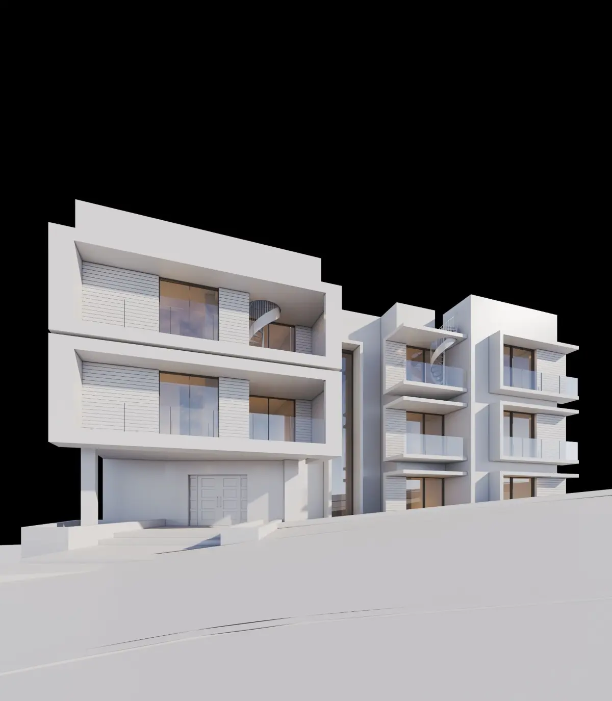 FULL CGI 3DS MAX VRAY 3D model. The project is a modern apartments building with contemporary design. This model contains 3ds Max 2022 and 2019 scenes/cameras ready for render in vray like you see in renders/screenshots. Lighting in Textured in 3ds Max and Vray,with the same render settings and lighting. 3ds Max native and exported to DWG, FBX, OBJ, SKP and (.3dm) Rhinoceros 3D (without textures in this exported file) . ZIP folder contains proxies, HDRI and textures. Feel free to use this models in your architectural and urban planning projects for exterior scenes in different file formats. You can practice and learn about the scene, lighting, render setup, camera and environment.