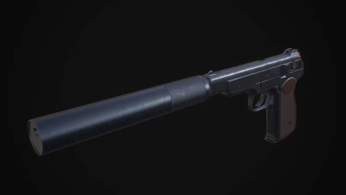 APB model with silencer, clip, 1 bullet = 12,549 Tris