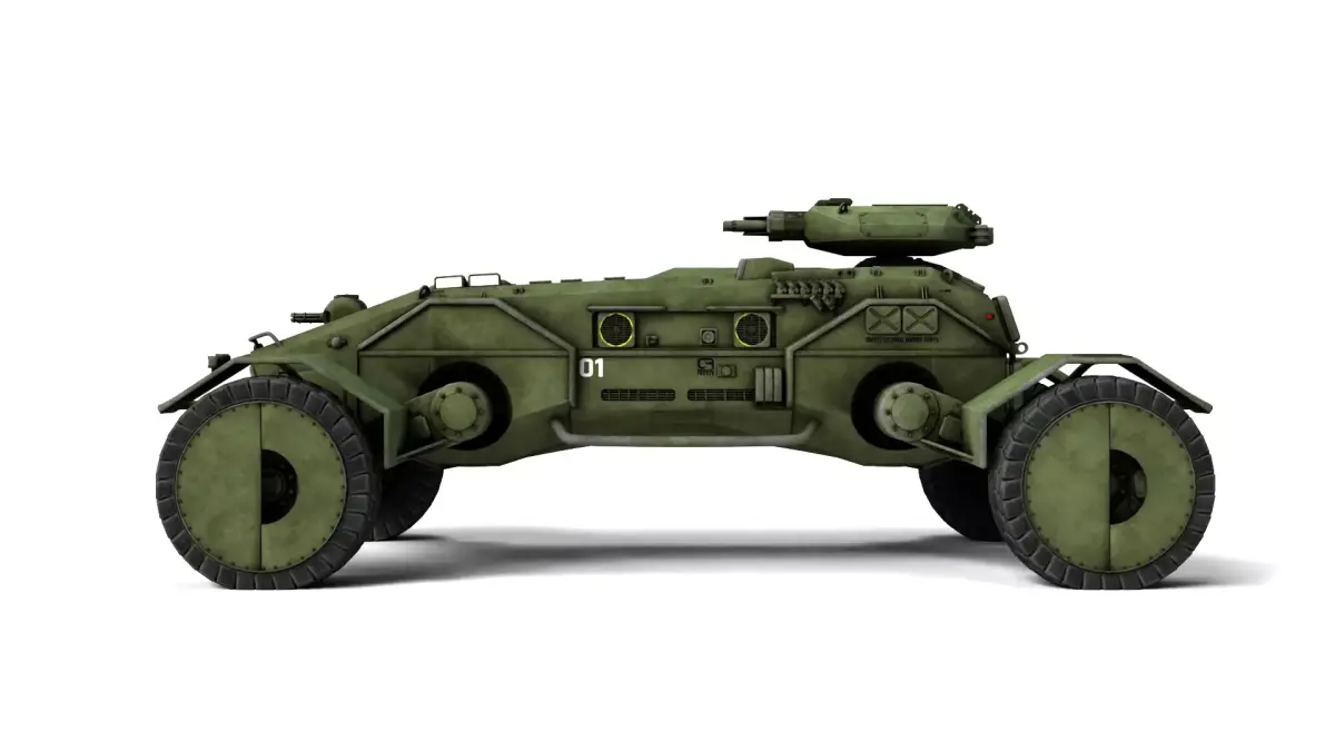 The model is fully rigged with rotating wheels, steering systems, and articulated suspension, allowing for dynamic movement and animation directly within Blender, Unreal Engine, Unity, or other platforms. Built with clean quad-based topology and fully UV unwrapped, the APC758 is optimized for both real-time applications and high-resolution cinematic renders.
