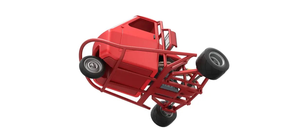 The model consists of parts: Air filter, Cab, Engine, Fork, Frame, Front rim, Front tire, Fuel tank, Handlebar, Left exhaust pipes, Main gear, Muffler, Radiators, Rear grid, Rear rims, Rear shell, Rear tires, Right exhaust pipes, Seat, Spoiler.