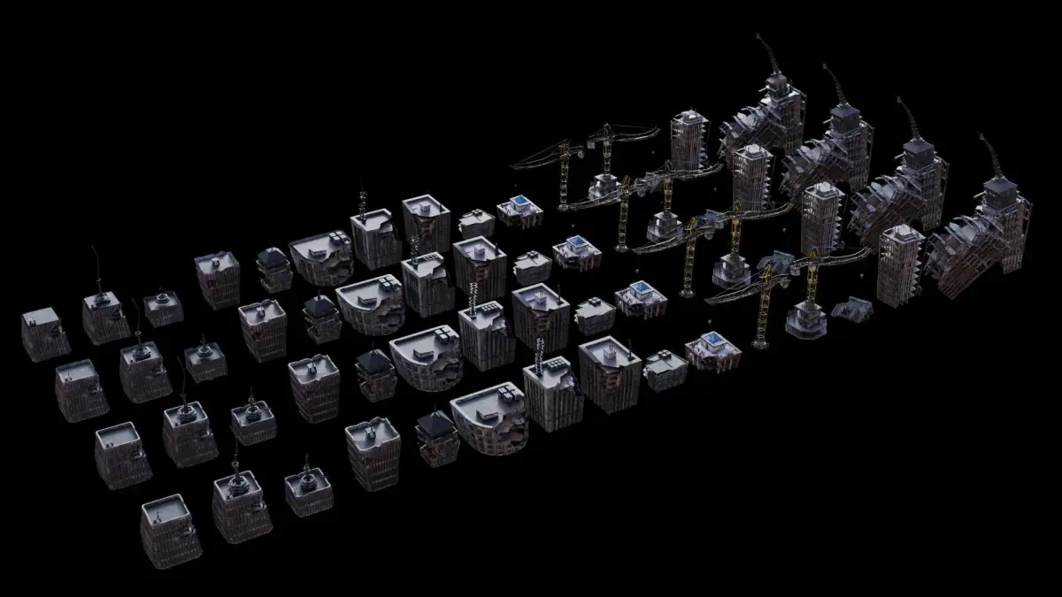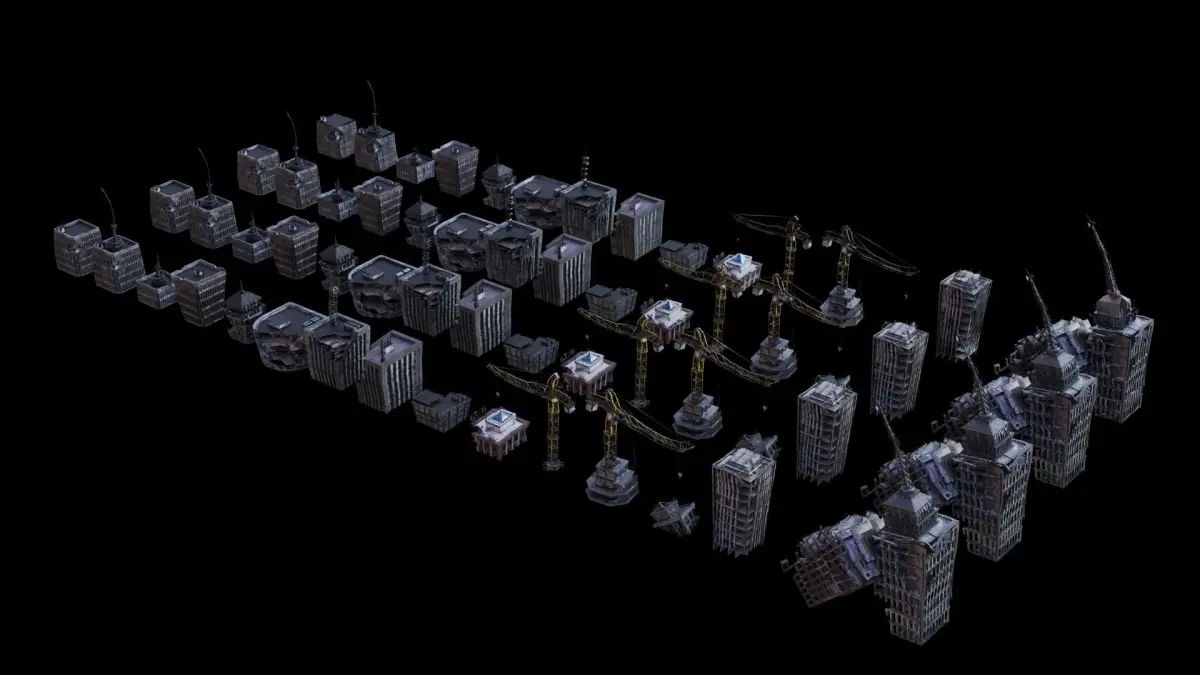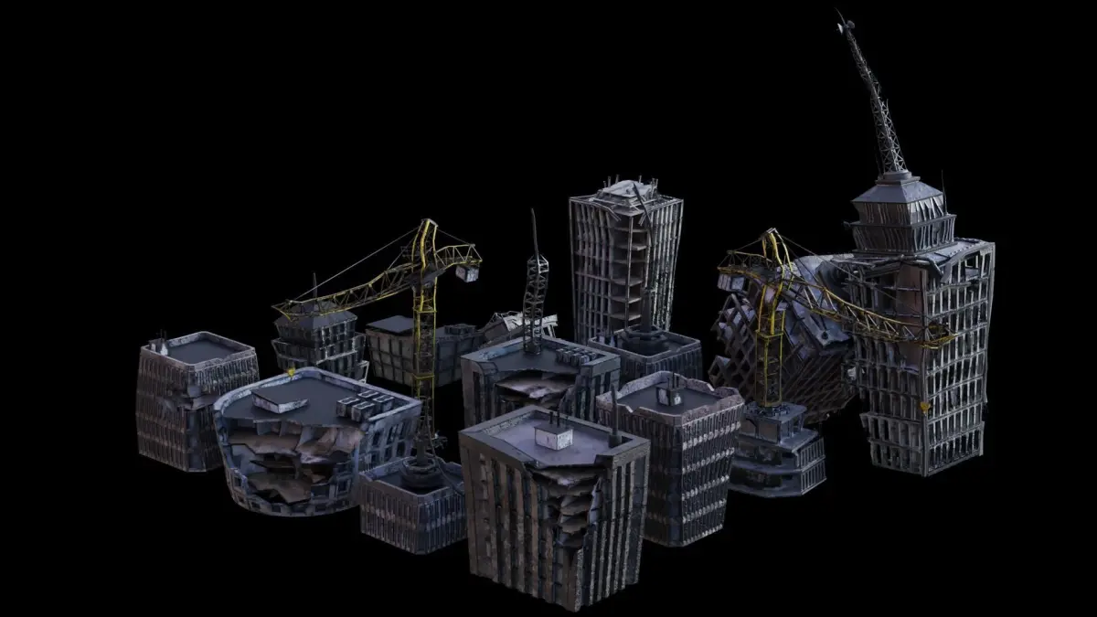 A complete pack with 15 different building assets. Scatter on a plane and get an instant post-apocalyptic city or a ruined flooded city. Every building is bended and skewed for a toony unique look. Included in the download are LOD for game use. Each building has 4 LOD stages. Also a 2D render of the buildings. Put these on a plane for a low on performance distant skyline. There are 64 textures in dimensions: 4096x4096.