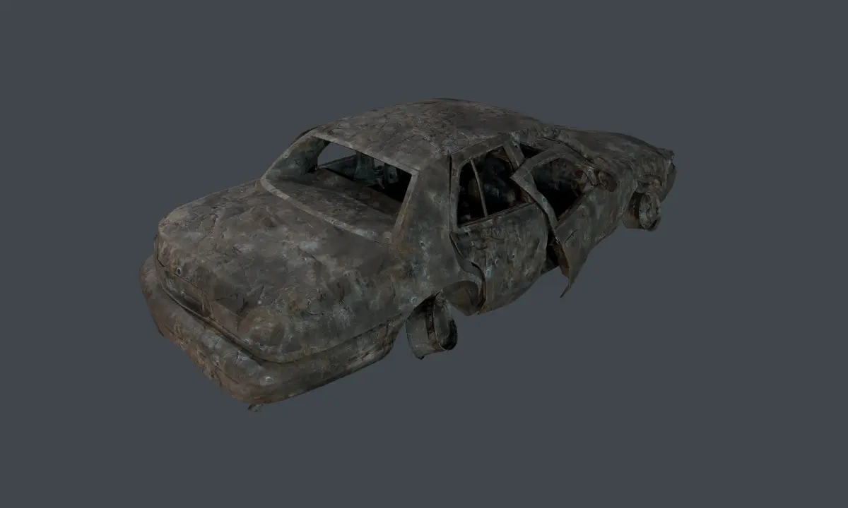 Model of an abandon car, unwrapped with PBR textures. OBJ files and FBX files. Ready for use in any 3D software or game engine. Unwrapped: Non- Overlapping.