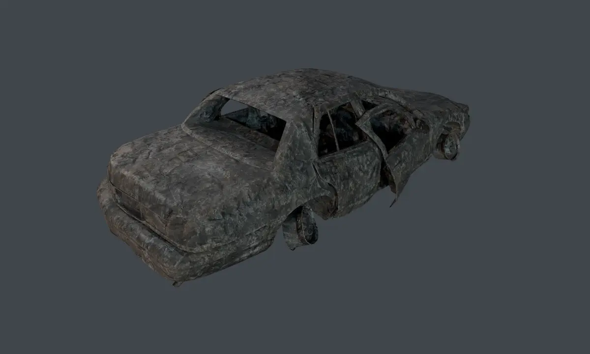 Model of an abandon car, unwrapped with PBR textures. OBJ files and FBX files. Ready for use in any 3D software or game engine. Unwrapped: Non- Overlapping.