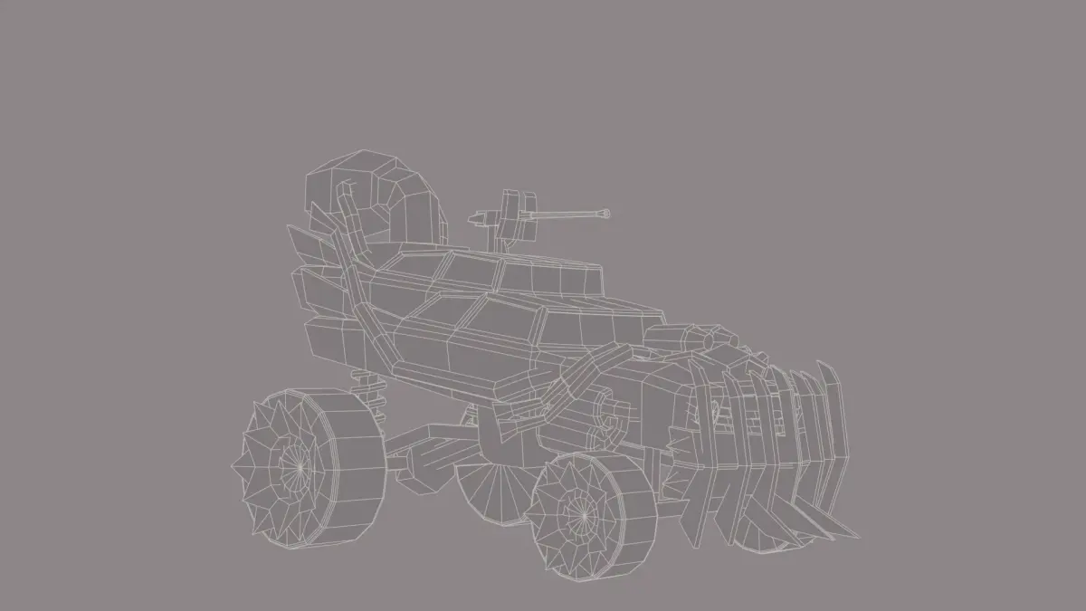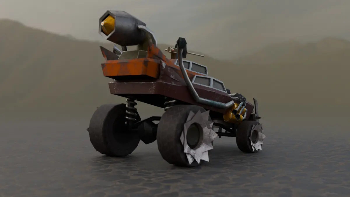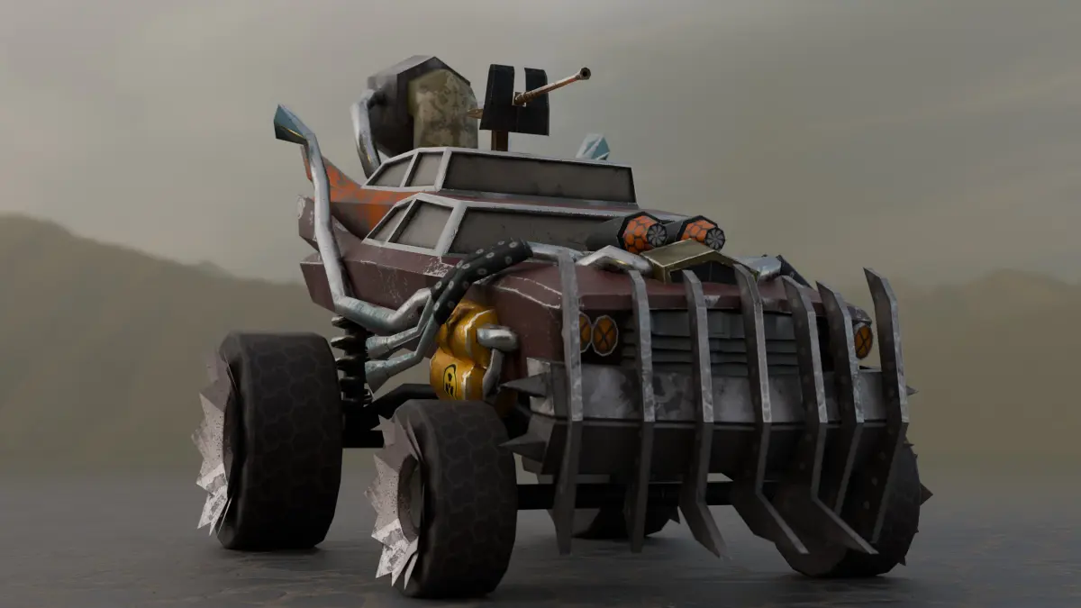 We present you a high-quality low-poly model of a car for post-apocalyptic worlds, ideal for games, animation in your projects. This brutal car is designed to survive in conditions of chaos and destruction, equipped with armored panels, spikes and homemade protective elements.