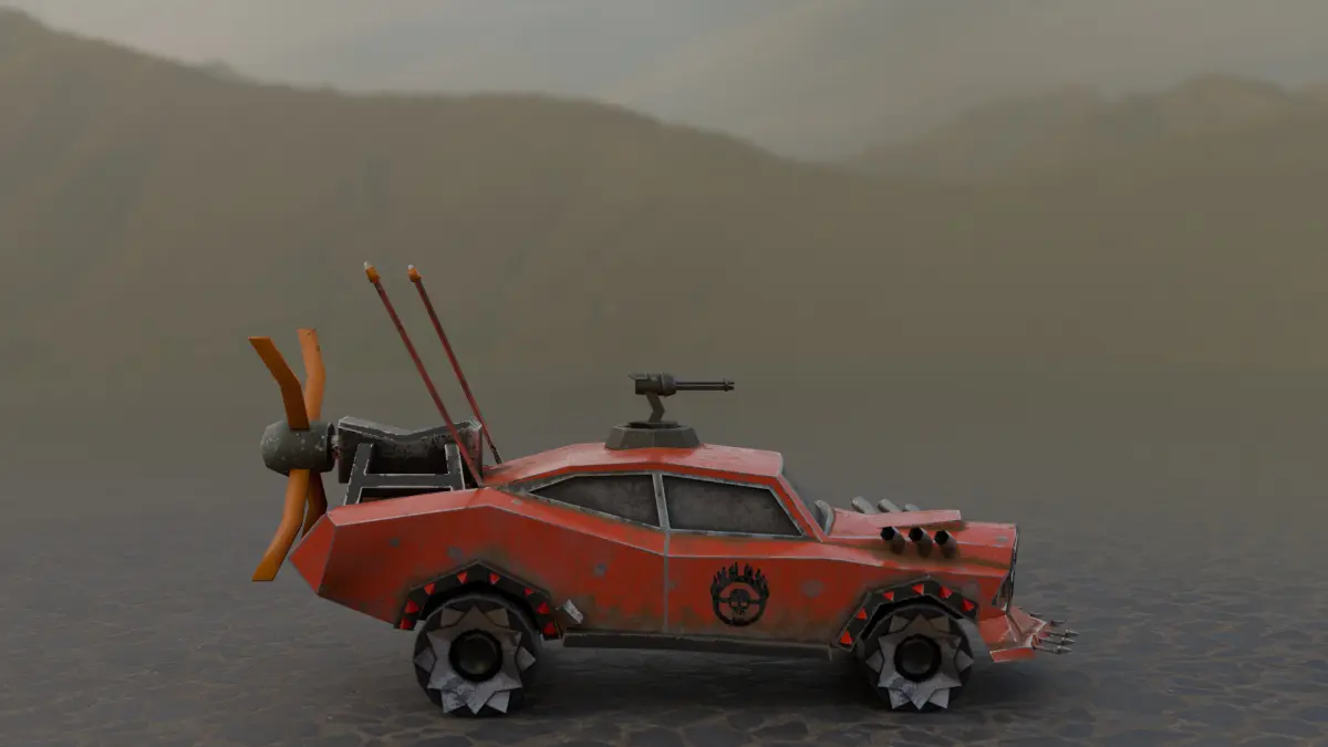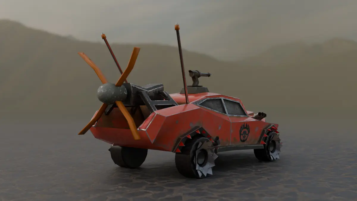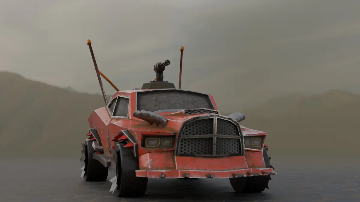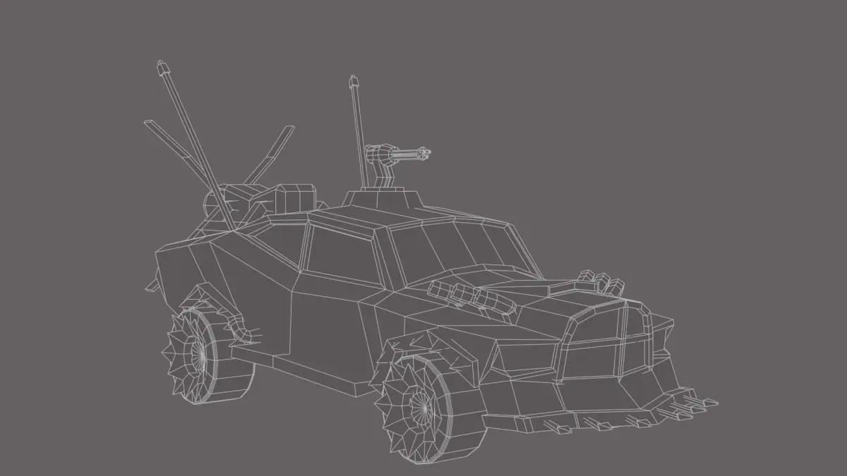 We present you a high-quality low-poly model of a car for post-apocalyptic worlds, ideal for games, animation in your projects. This brutal car is designed to survive in conditions of chaos and destruction, equipped with armored panels, spikes and homemade protective elements.