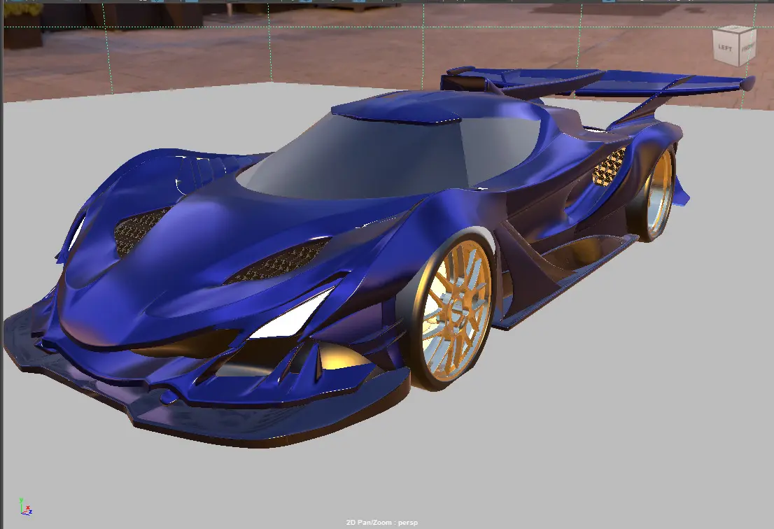 This model features clean topology and is optimized for both real-time engines and high-quality renders. With sharp edges, smooth curves, and an eye-catching metallic blue body combined with luxurious gold wheels, this concept car is ideal for product visualization, automotive advertising, cinematic projects, and VR/AR environments.