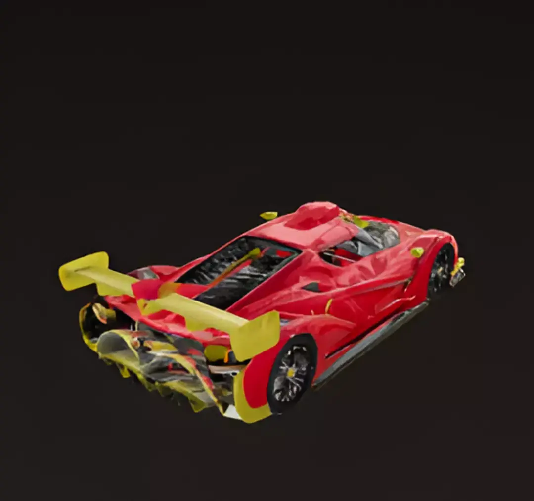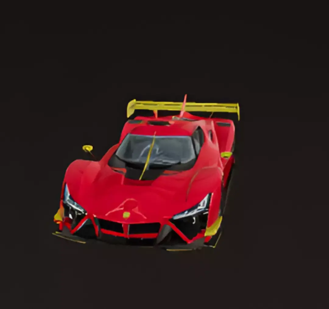 This is a striking front-on view of the Apollo Project EVO hypercar, rendered in a studio setting. The car's aggressive, track-focused design is highlighted by its vibrant red body and contrasting yellow accents on the hood, side mirrors, large rear wing, and aerodynamic fins. The vehicle features a sharp, angular front fascia with intricate vents and a bold, honeycomb grille. The headlights have a distinctive, modern LED signature. A large carbon fiber splitter is visible on the lower bumper, and the car's overall futuristic look suggests extreme performance. The professional lighting and a subtle reflection on the polished floor enhance the vehicle's dynamic presence.
