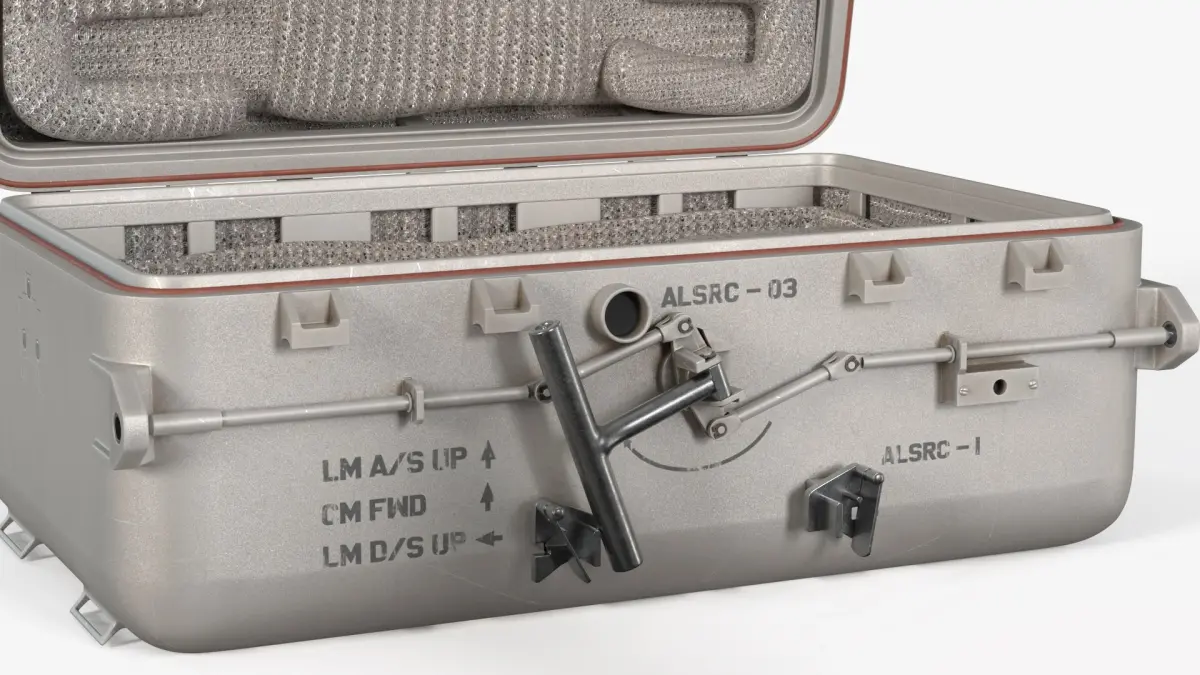 Apollo Sample Canister Housed in Protect Case is a three-dimensional model of a historical lunar sample container used during NASA’s Apollo missions for collecting and transporting moon rocks and soil.