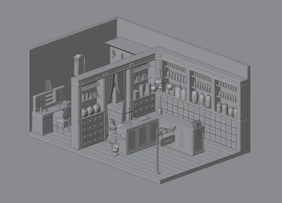 I am pleased to present to you this apothecary shop that will blend in with any decor of this style ! You can integrate this mini scene in all your games or animations and create a unique decor of which only you have the secret ! This pack contains: