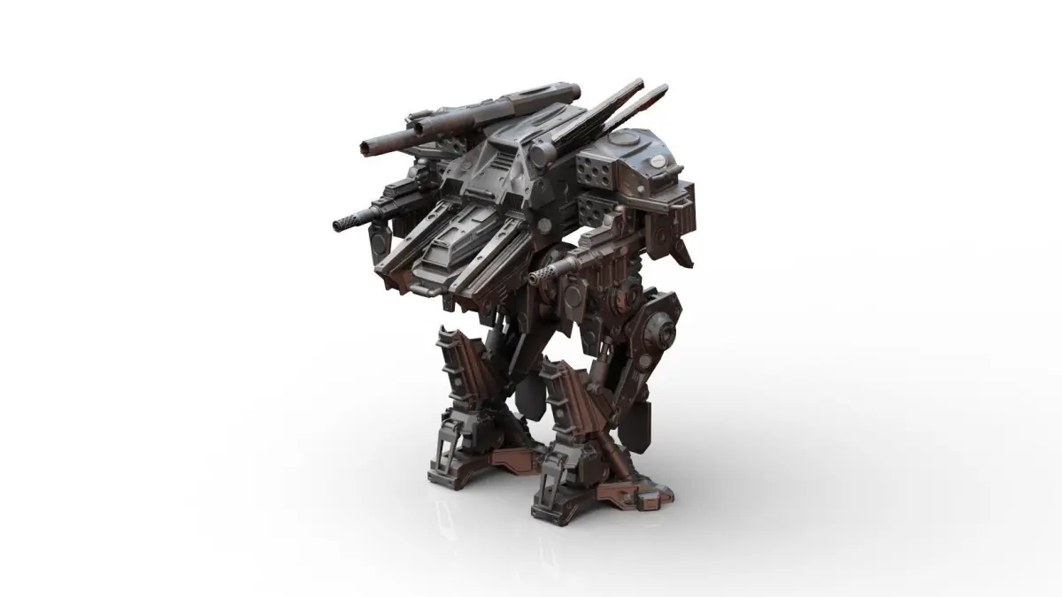 The APP-076 Apep was an earlier design used by the Western Alliances for urban invasion and suppression missions. It quickly became the face of martial law and oppressive actions, used in multiple city occupations. Against hardened targets, the Apep has multiple missile racks that lack accuracy but make up for it with area saturation. For longer range conflicts, it mounts the same thumper cannons as the popular Kuznets. To avoid ambushes, the Apep mounts a sophisticated sensor array.