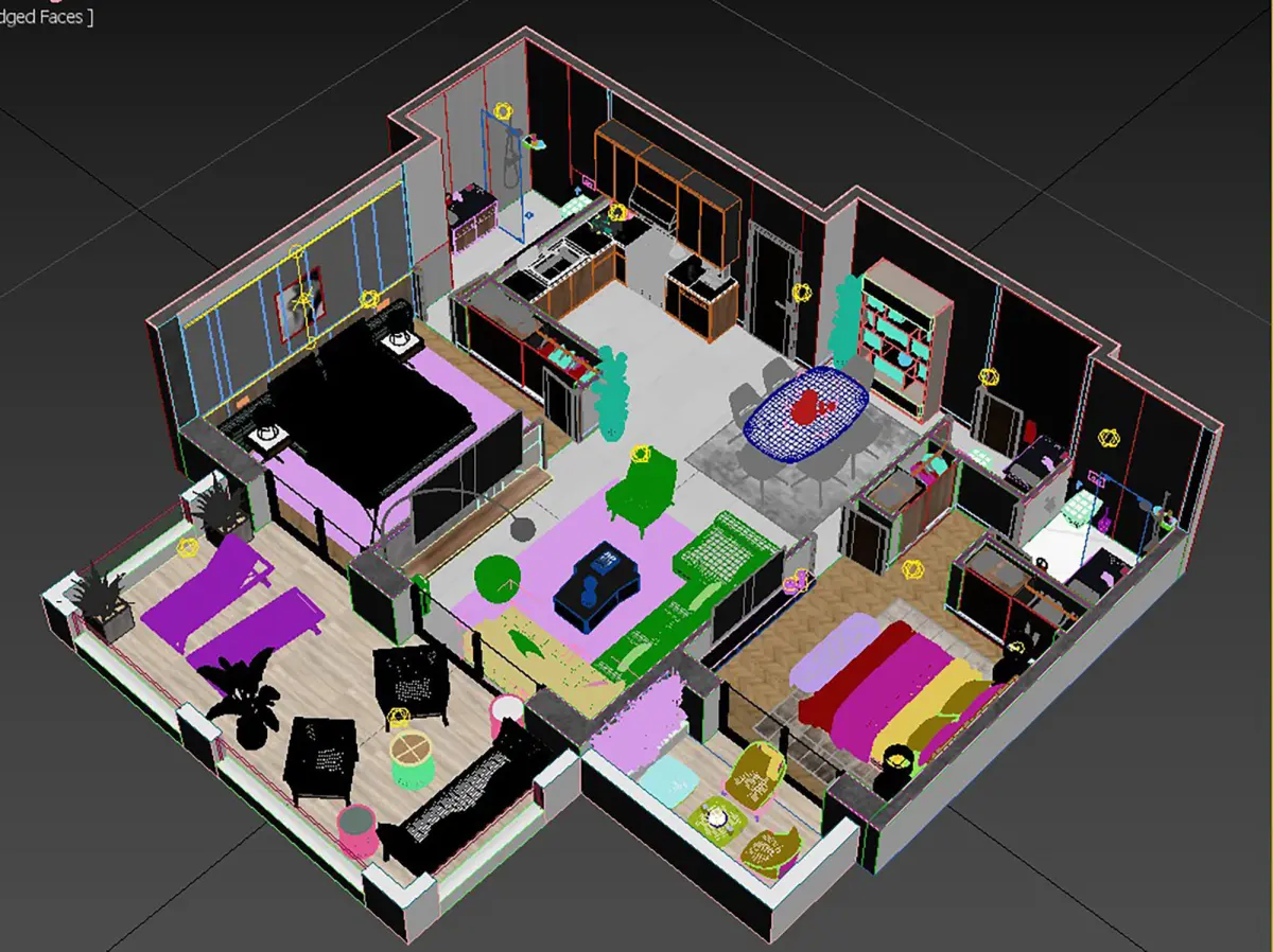 A complete and detailled floorplan of a modern appartment with all fourniture and textures visible in provided images. objects was selected carefully to match design of each other with carful attention to colors and textures harmony. Regardless of your style, interior design should have a personality. Take a look at the brilliantly designed spaces here and the qualities that make them so excellent. Maybe they'll inspire a great design of your own
