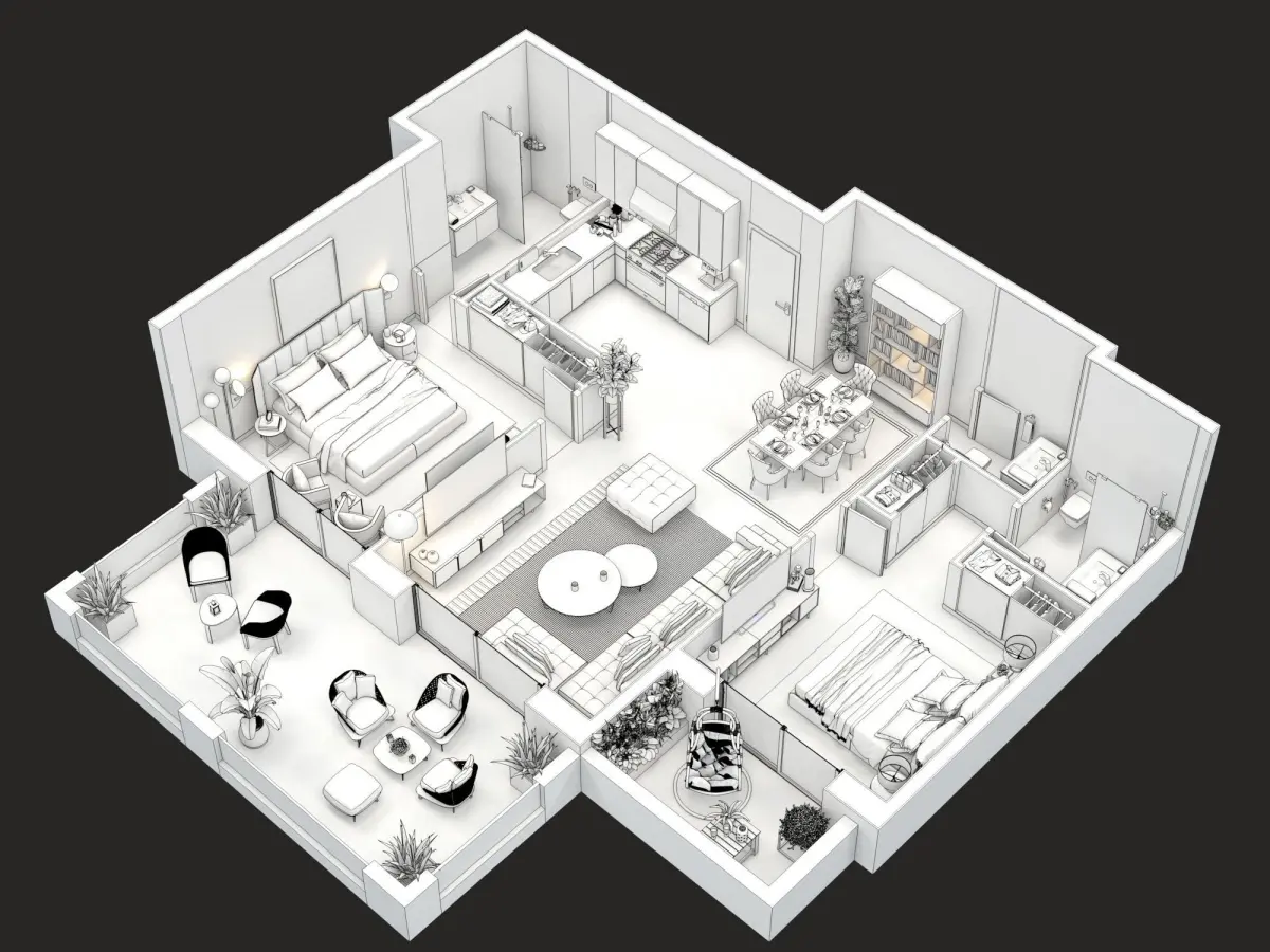 A complete and detailled floorplan of a modern appartment with all fourniture and textures visible in provided images. objects was selected carefully to match design of each other with carful attention to colors and textures harmony. Regardless of your style, interior design should have a personality. Take a look at the brilliantly designed spaces here and the qualities that make them so excellent. Maybe they'll inspire a great design of your own