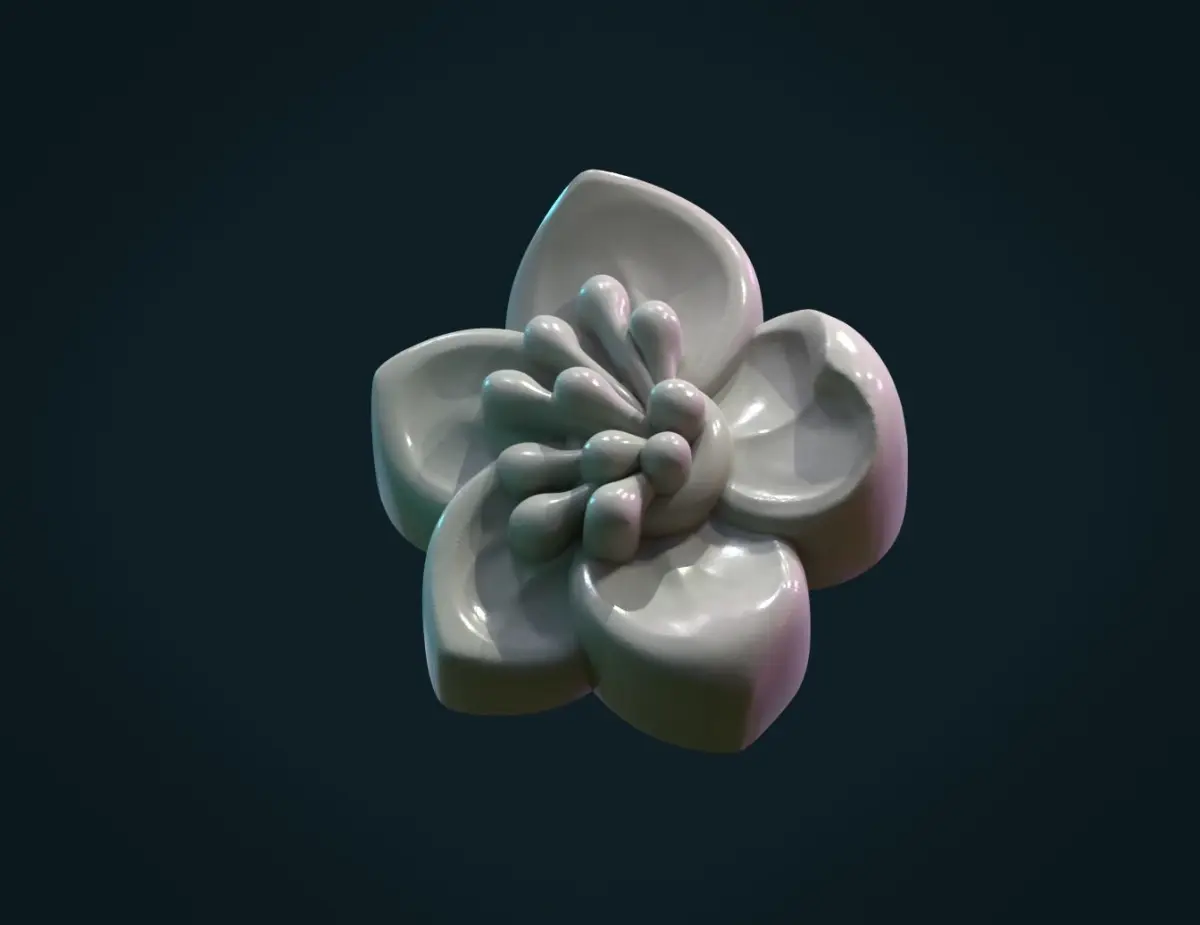 1) A_Flower_solid. (.blend, .fbx, .obj, .stl) It is the solid version with flat back side. 88048 triangular faces.