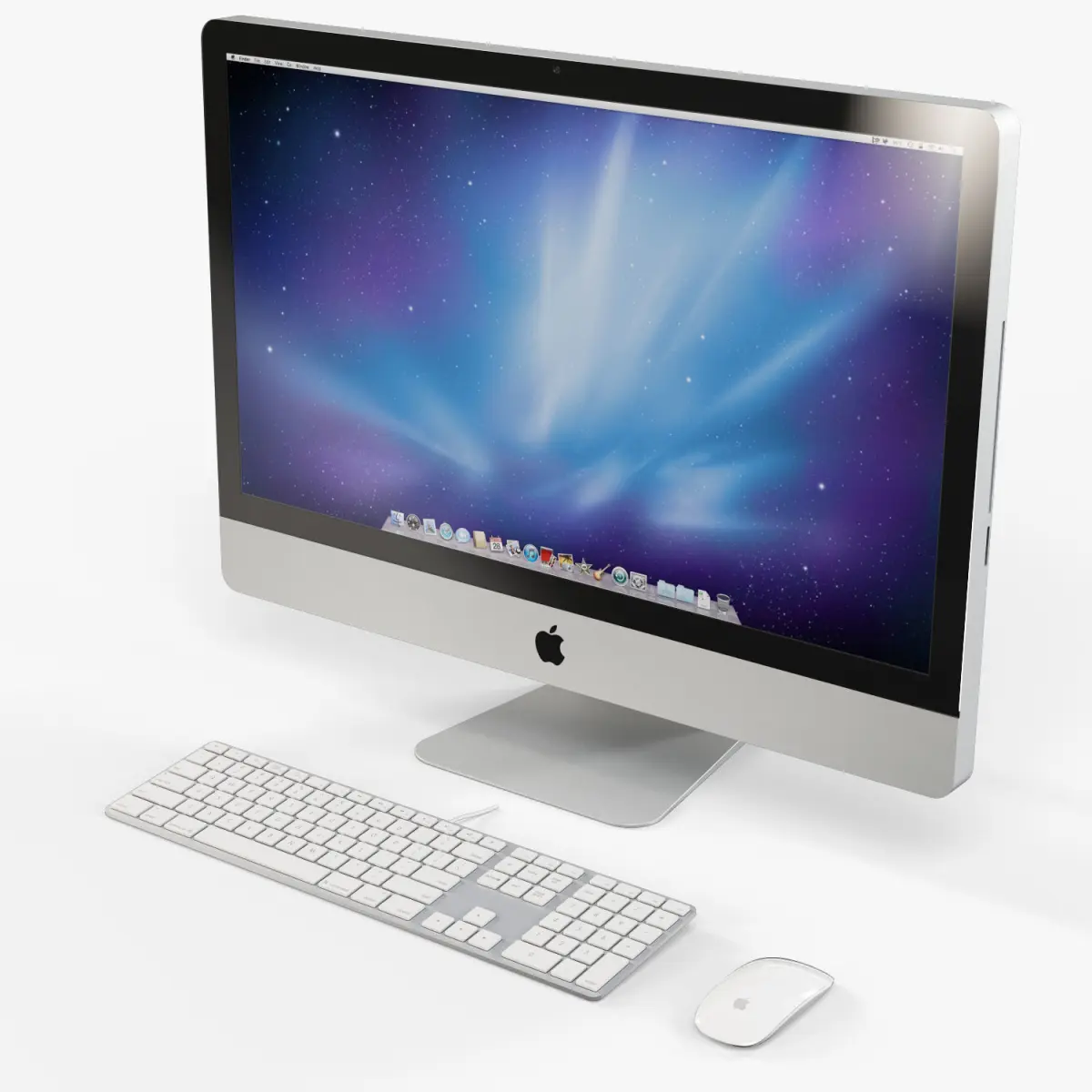 • Let me present to you high-quality middle-poly 3D model Apple IMac 27 2010 or 2011 with Keyboard MB110 and Magic Mouse. This model can be used in various fields 3D Graphics such as game development, advertising, interior design, motion picture art, visualization, etc... Modeling was made with ortho-photos of real computer that is why all details of design are recreated most authentically.