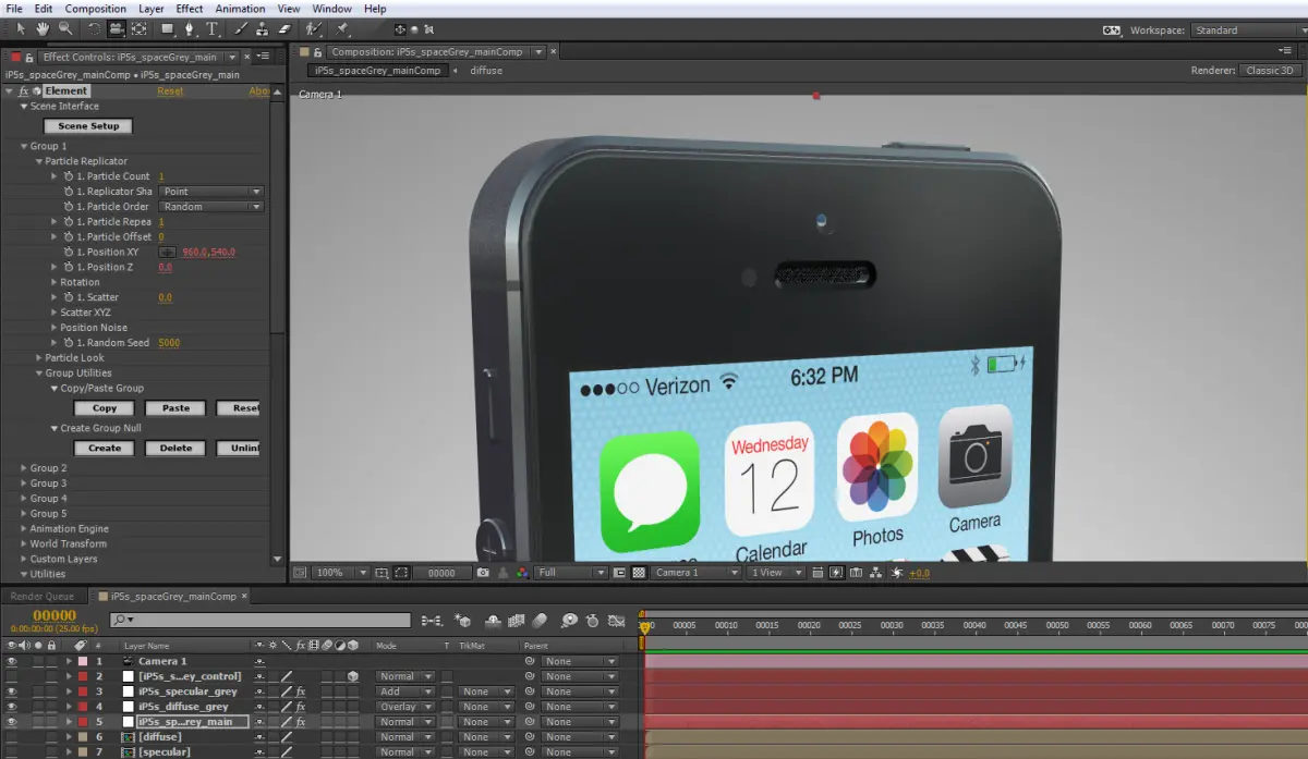 Apple iPhone 5s for Video Copilot's Element 3D v1.6.1