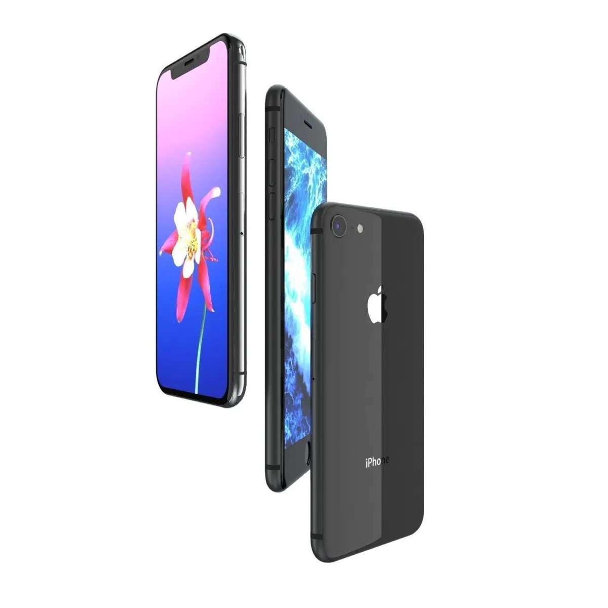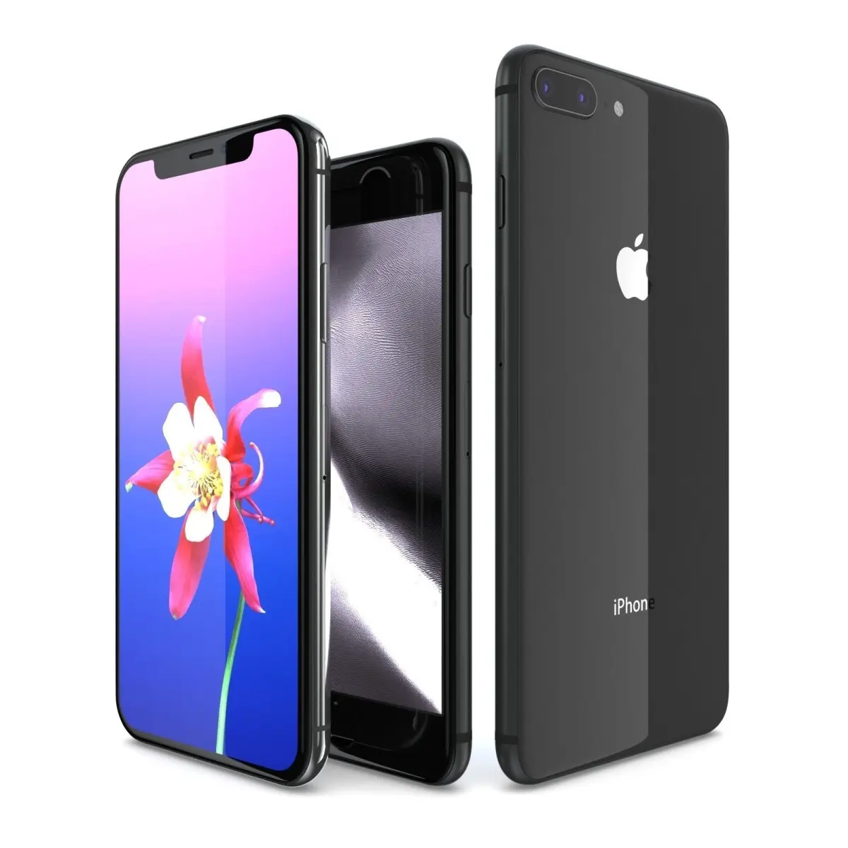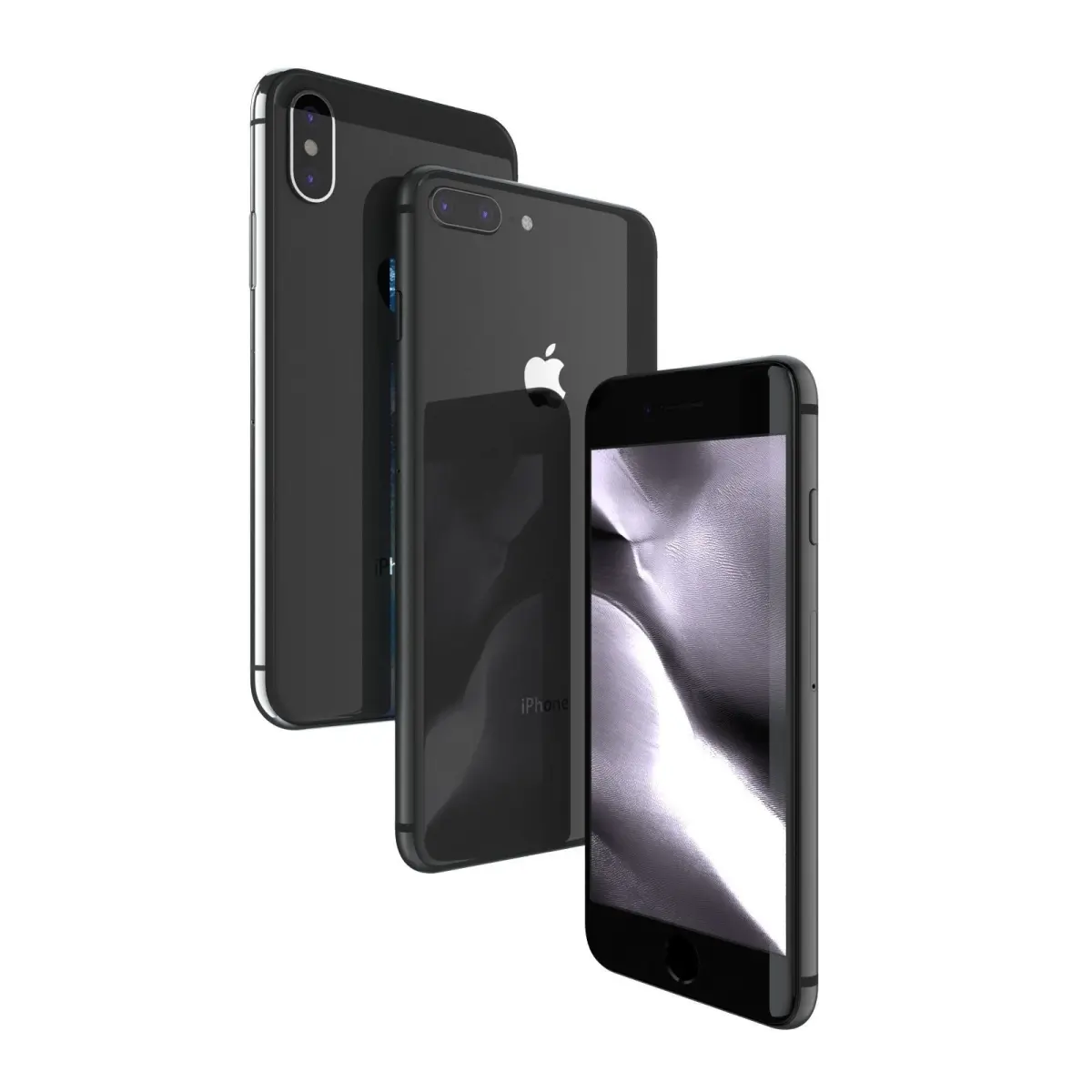 This pack included:1. Apple iPhone X Space Gray2. Apple iPhone 8 Space Gray3. Apple iPhone 8 Plus Space Gray-----------------------------Bee3dd is a team who making 3d model best quality, you don't need worry when use our models. We take care to build the smallest detail in the model to ensure the best results. These things are not in others.Our slogan is: best quality - best price! Don't forget visit our site!-----------------------------The model has a fully textured, detailed design that allows for close-up renders, and was originally modeled in 3ds Max 2012 and rendered with V-Ray. Fidelity is optimal up to a 2K render. Renders have no postprocessing.-----------------------------File Formats:+ 3ds Max 2012 + Vray 2.0 full setup lighting, camera+ 3ds Max 2012 standard+ Cinema 4D R12 standard ( materials and textures was setup )+ Maya 2012 standard ( materials and textures was setup )+ Lightwave 11 ( materials and textures was setup )+ FBX 2012+ OBJ 2012+ 3DS 2012+ 1 file 360 product ( 60 images 1200*1200 pixels )All models before 8-2017 haven't 360 product but if you need it please contact us to get yours in 24 hours.-----------------------------Geometry:+ No isolated vertices+ No coincident vertices+ No coincident/coplanar faces+ Quads and Triangles only ( Clean edge flow, mostly quads, subdividable topology, no poles with more than 5 edges on the model, holding/support edges present to retain shape after subdivision )+ Models resolutions are optimized for polygon efficiency. (In 3ds Max, the Meshsmooth/Turbosmooth function can be used to increase mesh resolution if necessary.)+ Real-world scale ( We make 3d model from actual size and images reference. It is best for making video intro, marketing, animation, games... )+ Naming and Organization ( All geometry is contained in a single layer structure, with the layer having the same name as the product. )-----------------------------TEXTURES:- Textures highquality, enough for close-up render ( 2048-4096 pixels )- UVWs mapping with mixed: overlapping and non-overlapping- No texture paths referenced by the model. All texture paths were stripped from the model.-----------------------------About Bee3DD: ( Working in 3d modeling since 2013 until now )+ We offer all electronics 3d model ( latest and oldest ). Our collection is biggest in the world. It is place where you can find anything about technology for your project ( earlier and faster than others )+ Every model we build goes through thorough Quality assessment both visual and technical to make sure the assets look realistic and the models are of the best quality.