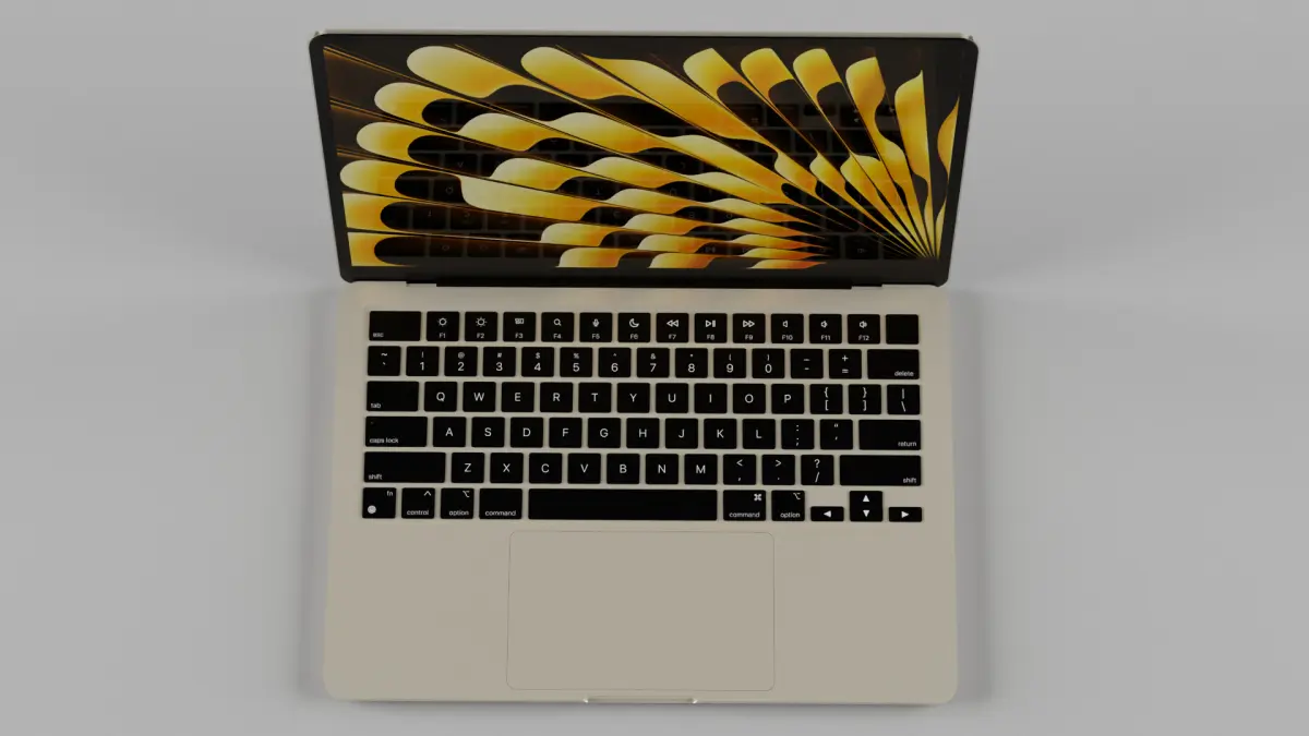 High-quality 3D model of a modern aluminum laptop featuring a detailed keyboard and vibrant abstract display. Ideal for tech visualizations, mockups, and product renders. Clean topology, realistic materials, and customizable screen.This is a model of a Apple MacBook . Originally created with Blender 4.4 Vertices 11,012 Edges 21,740 Triangles 19,468 Blend Fbx Obj** STL**