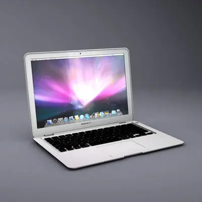 3d asset of the Apple Macbook Air laptop computer.All materials and objects have been labeled for easier manipulation of the asset.Model is completely polygonal.All textures and materials are included.Both the flap down door for the I/O ports and the LCD screen Axis have been positioned like a hinge so that they (FLAP DOWN DOOR and SCREEN) can pivot OPEN and CLOSED.