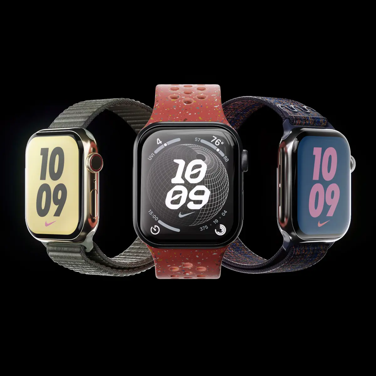 The set contains different straps in different colors:-Nike Sport Band Blue Flame-Nike Sport Cargo Khaki-Nike Sport Desert Stone-Nike Sport Magic Ember-Nike Sport Midnight Sky-Nike Sport Pure Platinum-Nike Sport Black-Nike Sport Bright Green-Nike Sport Game Royal-Nike Sport Sequoia-Nike Sport Starlight Pink-Pride Sport Loop-Starlight Sport Loop-Unity Sport Loop-Cypress Sport Loop
