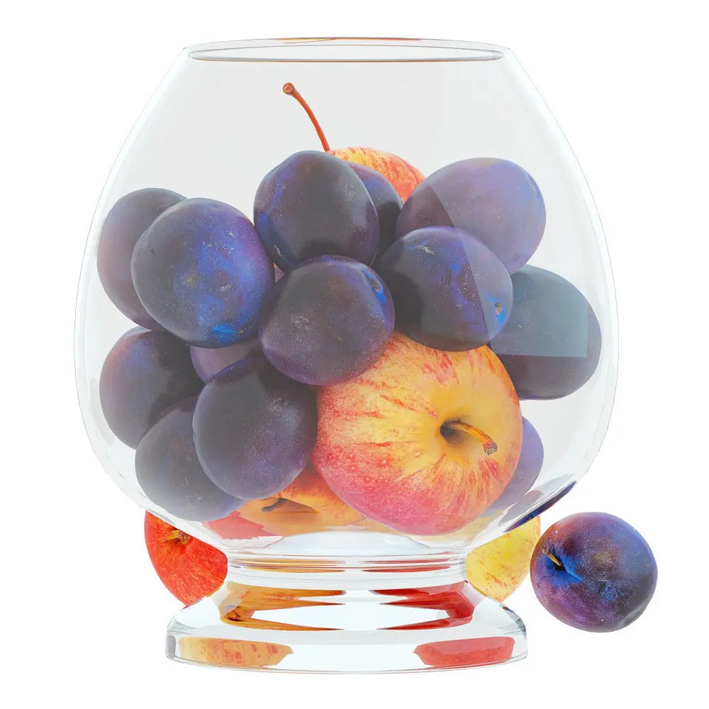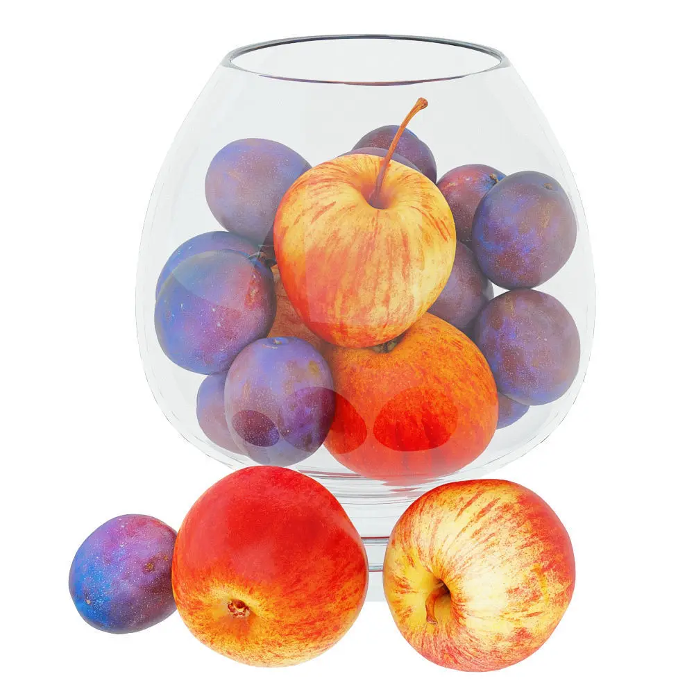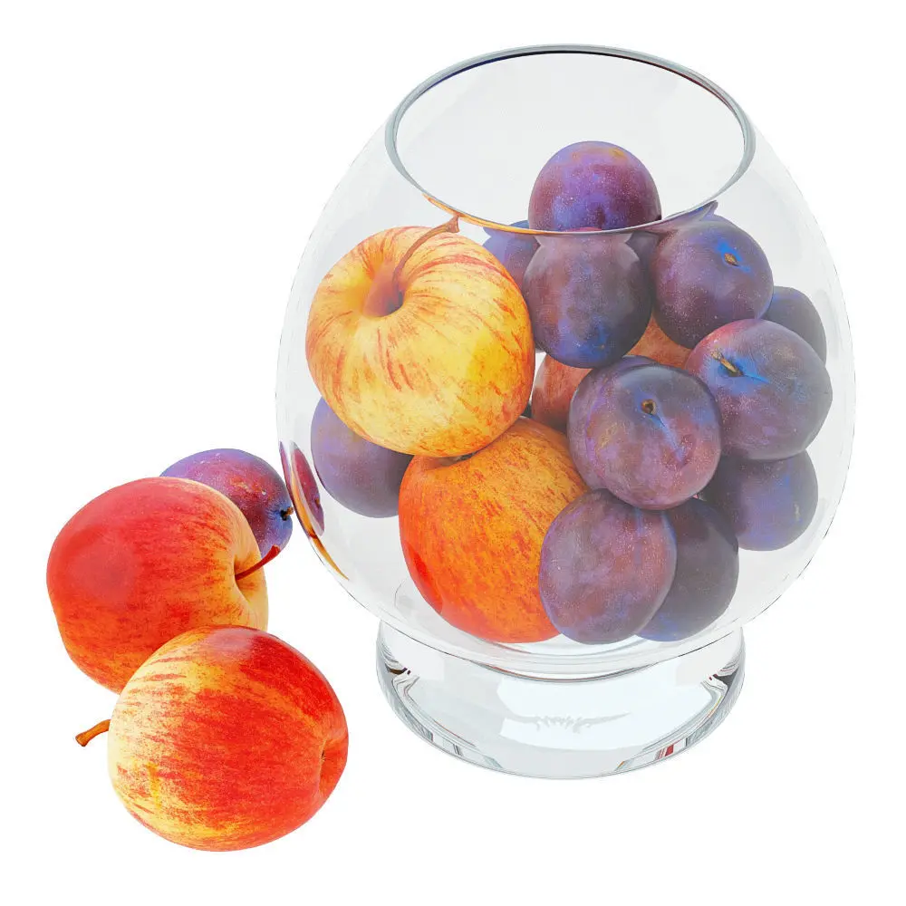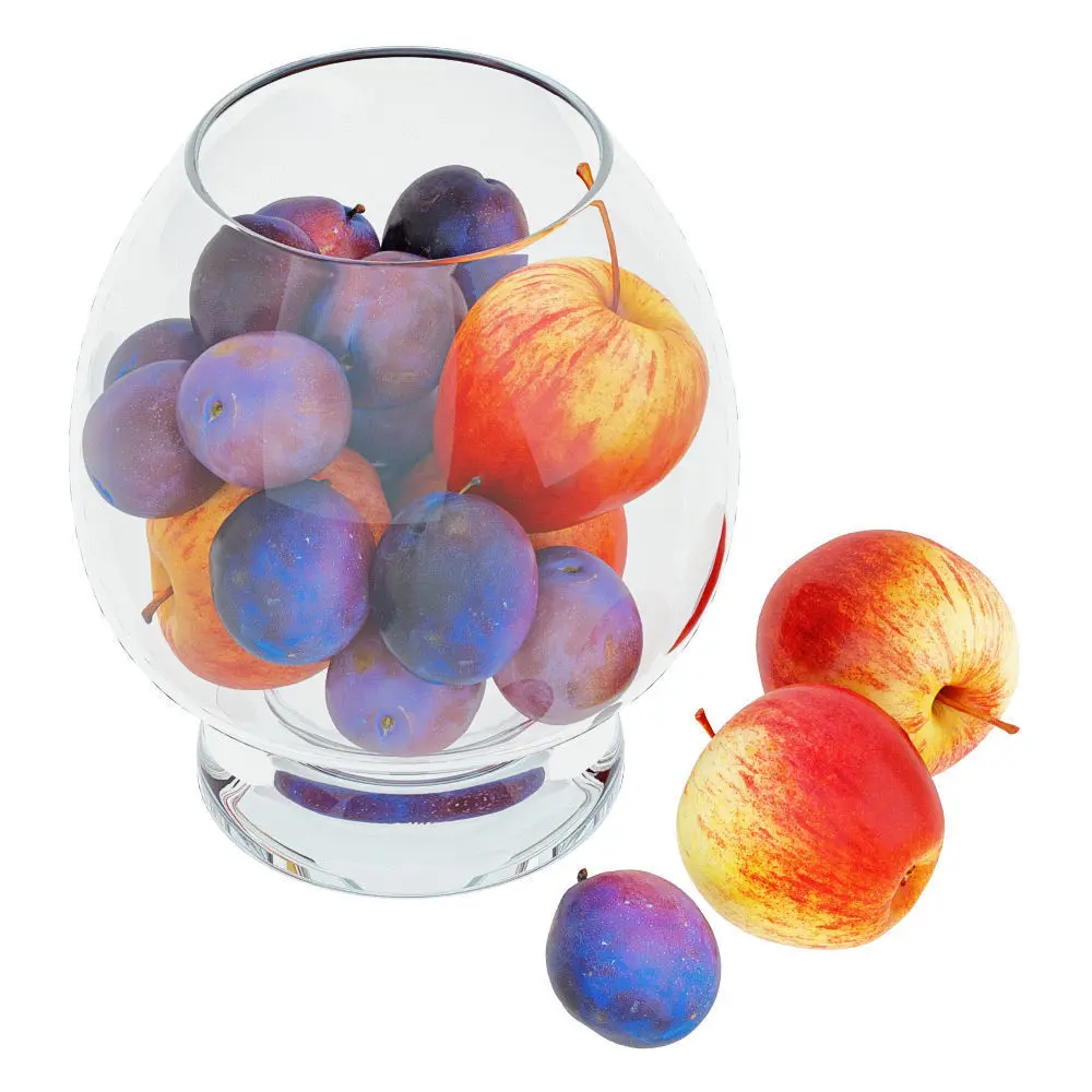 3ds Max 2010. V-Ray 2.40.03. File formats fbx, obj, 3ds, dae, dwg, dxf, stl. Apples and Plums in a Round Glass Vase. Polygons: 106738. Vertices: 106782