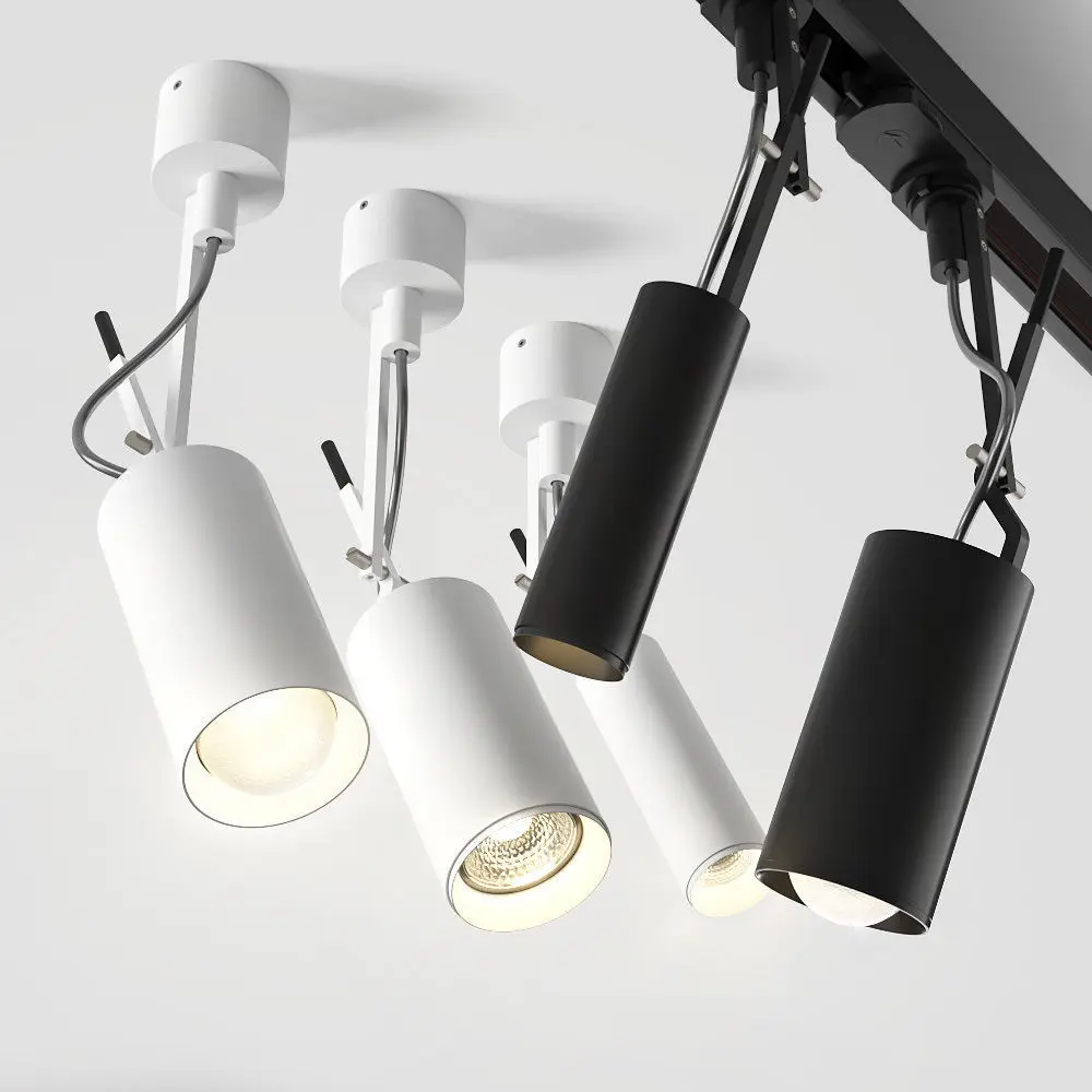 Model includes 8 configurations of PETpot lights (track and spotlight versions) and essential units to design your own track layout - surface, recessed or suspended.
