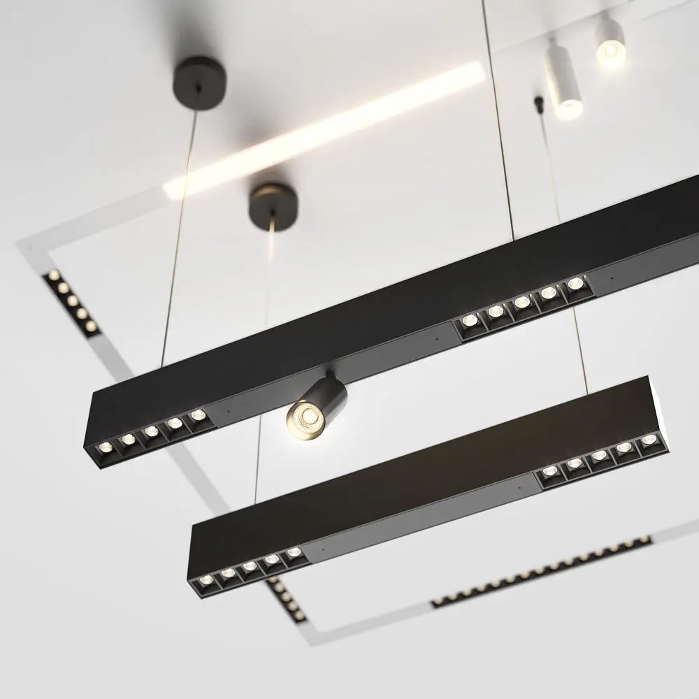 Model includes 3 configurations of rafter lights in several length variations and essential units to design your own system layout - surface, recessed or suspended.