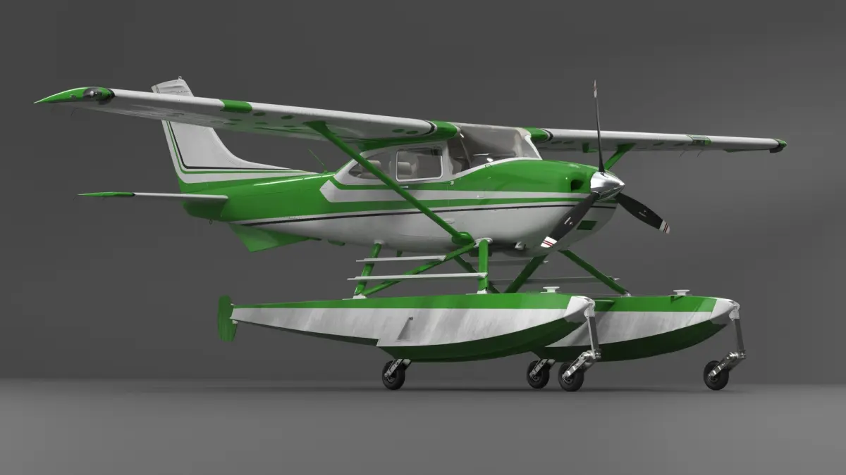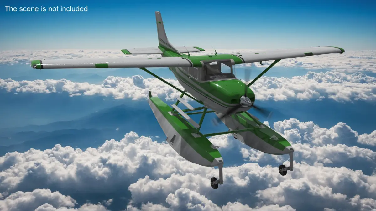 Aqua Seaplane Floats Green is a 3d model of type of aircraft that is designed to take off and land on water, specifically in aquatic environments like lakes, rivers, and oceans.