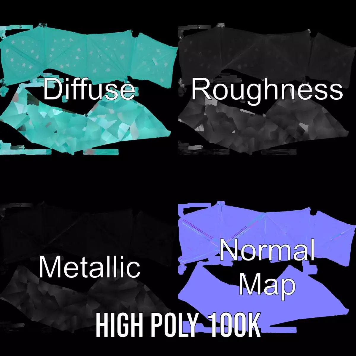 This charming Aqua Star Kite model pack features a delightful star-patterned design perfect for recreation and decorative scenes. The set includes three levels of detail, ensuring optimal performance across various platforms. Ideal for animation, children’s playground visualizations, or educational tools showcasing the principles of flight. Each model boasts precise PBR textures—Diffuse, NormalMap, and reflection/roughness/metallic—compatible with all modern rendering engines. All textures are 4096*4096 in size, ensuring high-quality visuals. No overlapping UVs ensure seamless texturing. Like and leave a comment if you enjoyed the model!