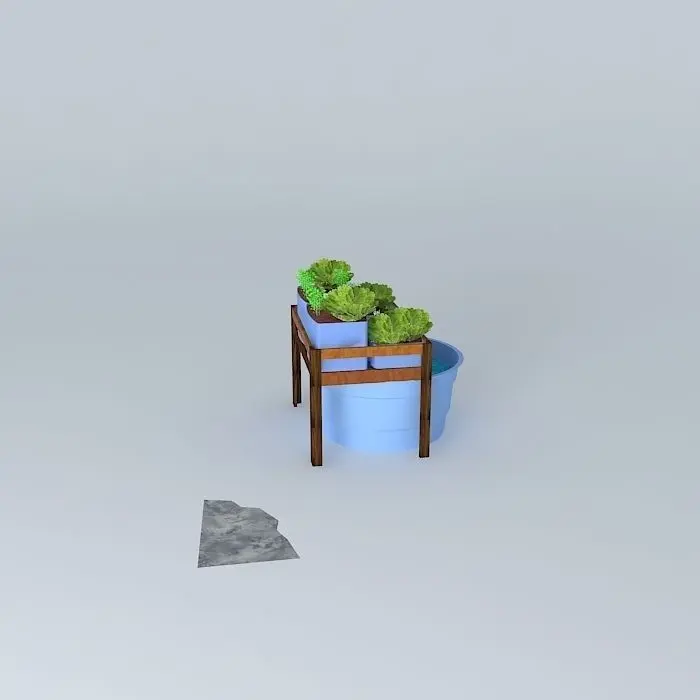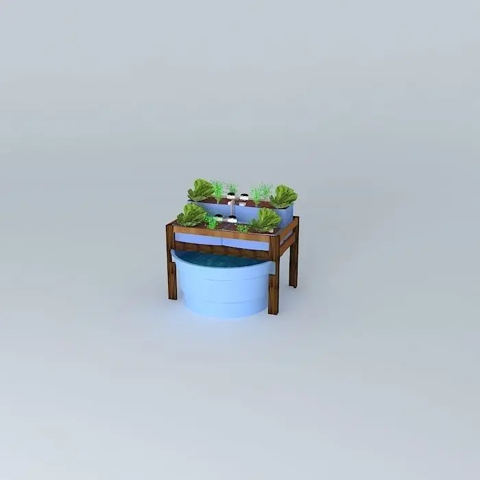 This 3D model was originally created with Sketchup 13 and then converted to all other 3D formats. Native format is .skp 3dsmax scene is 3ds Max 2016 version, rendered with Vray 3.00 System 1 consists of reservoir 500 for fish l, 2 drums 50 l, 2 bombona halves 50 liters with a 2000 l / h pump. This is a basic system, a system really for beginners. One can add filter solids, biological filter, but in the beginning is not really necessary. The design of the tank is 500 l, but can be easily replaced by a 250 l in which one could easily reach 10 kg fish. Biological filtration to give the substrate cultivation beds, and filtering the solids well. With time the solids will accumulate in substrate cultivation beds, but can be removed only with a washing of this substrate. The ratio of the material and the necessary parts can be found at the link below.
