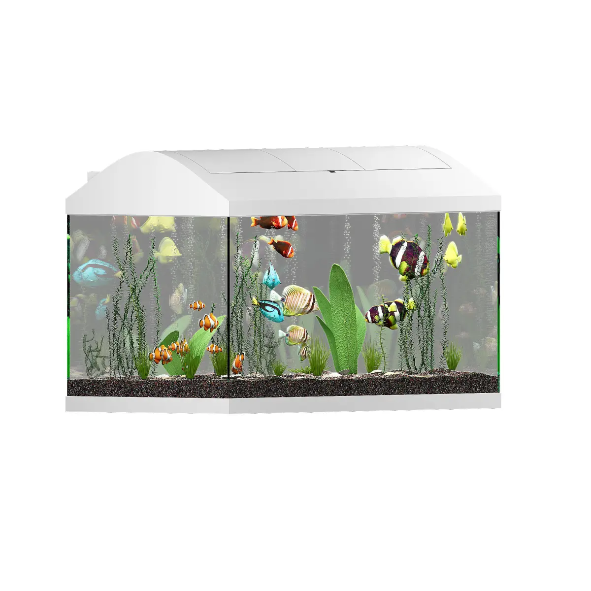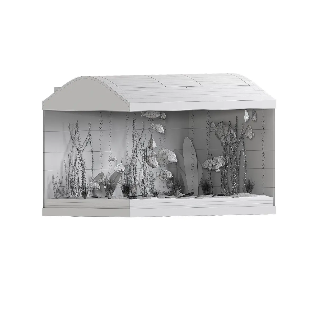 A model of a marine aquarium.Aquarium LEDDY SET PLUS D&N 60 straight / White (54 L) (LT 7W D&N)Aquarium size (cm): 600mm x 300mm x 300mm • Aquarium volume: 54 L• Glass thickness: 4 mmThe model is made in Corona.Name: AquariumVersion: 2017Units: MillimetersDimension: 603.53 x 303.53 x 385.81Polys: 709 770Render: CoronaFormats: 3Ds Max 2017,FBXFeatures: - Photorealistic look - Great even for very close-ups. - Several realistic tropical fish are included.