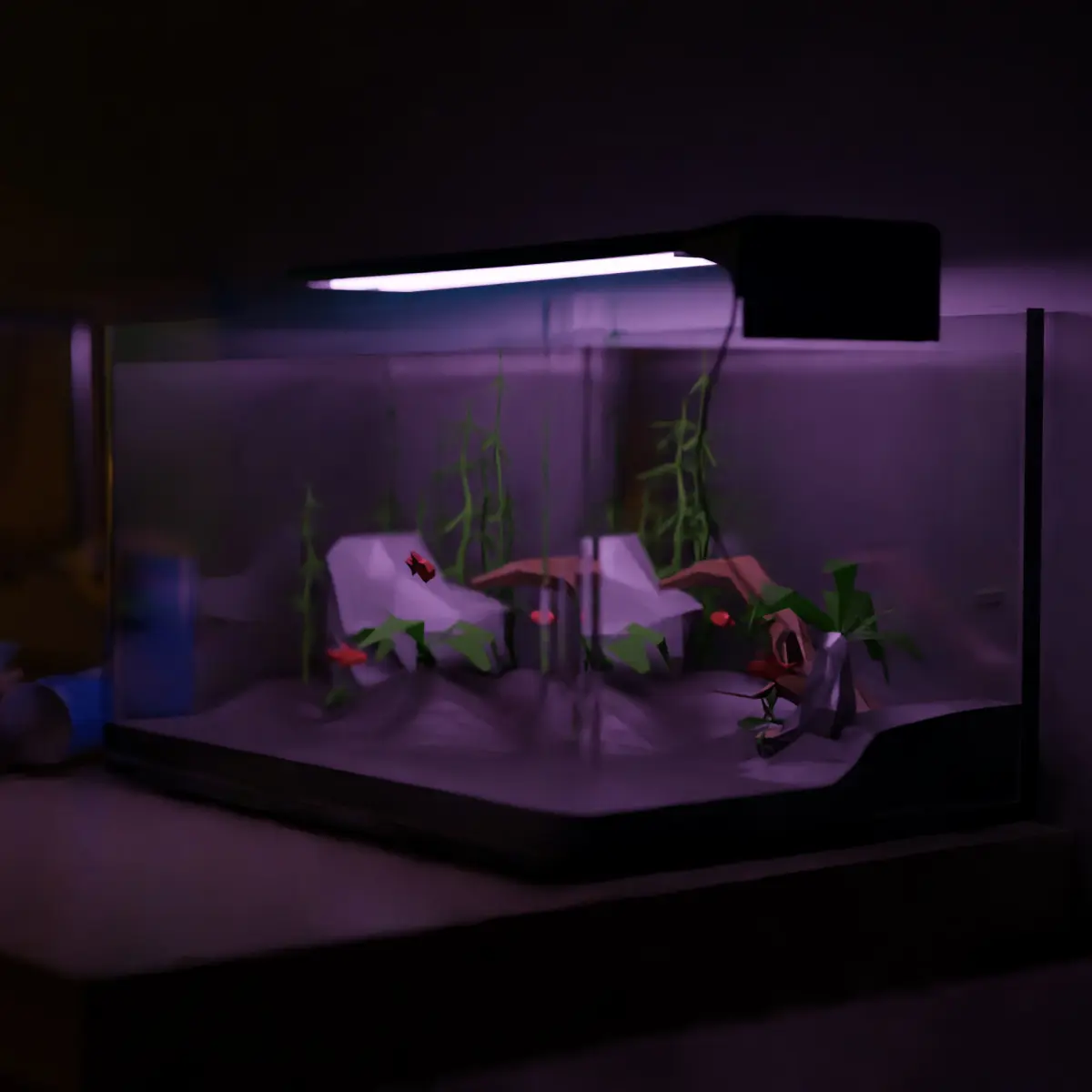 Aquarium Low poly with plants, decoration, fish, and light.Need to hide the object for water to see the other objects.