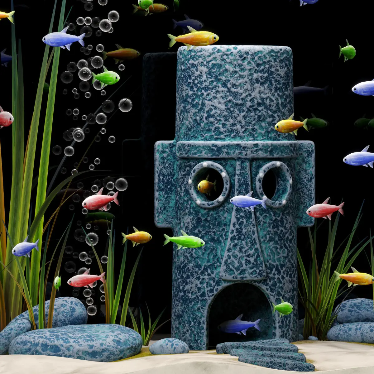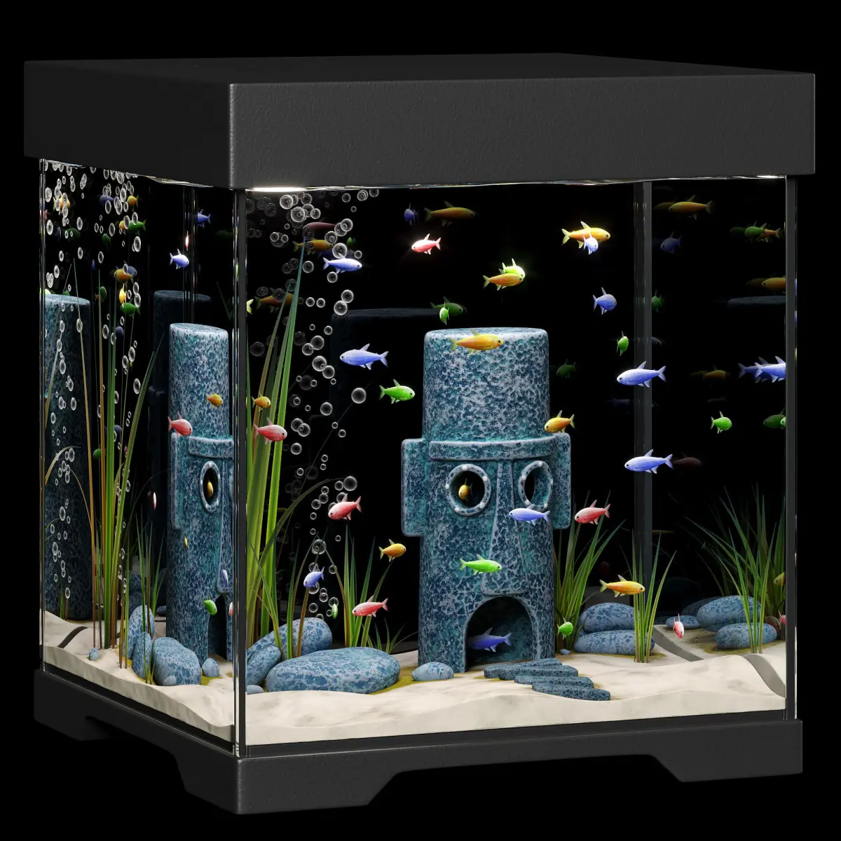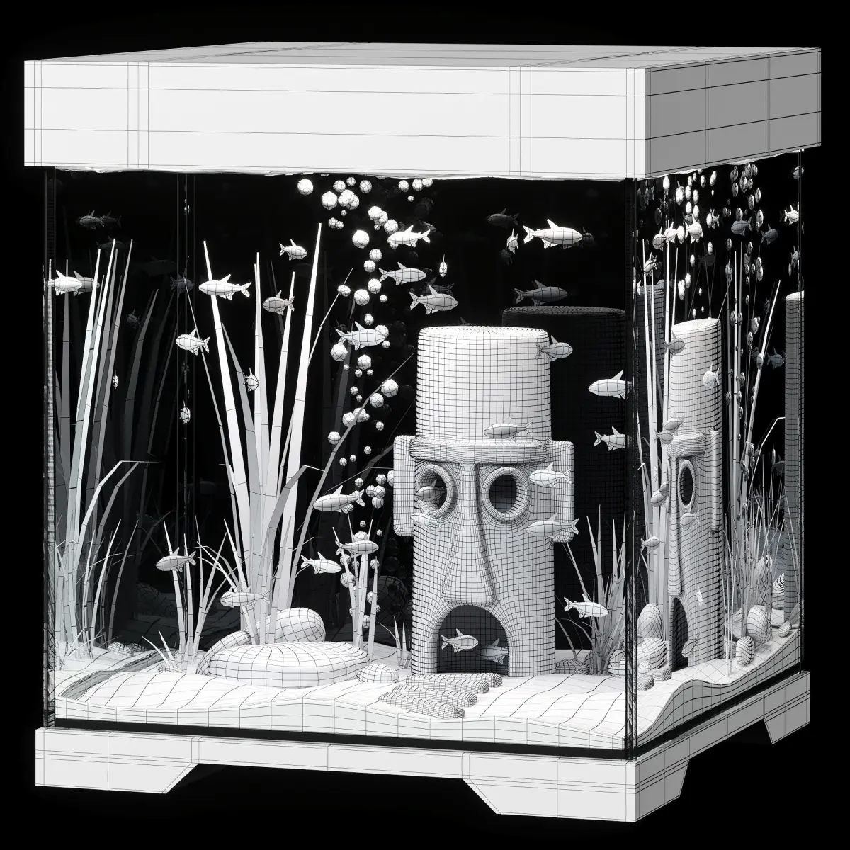 Aquarium 25x25x25cm. The model is made for anti-aliasing, it is recommended to enable TurboSmooth during rendering.