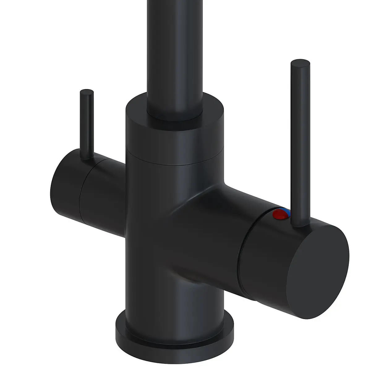 AQUASANITA mixerThe faucet body is made of the highest quality brassThe mixer is equipped with a jet aeratorMounting sleeve makes faucet installation easierConnecting hoses 45 cm includedInnovative, durable and easy to clean Nero coatingOnly the best materials, the quality of which is confirmed by laboratory testsDurable brass hose ends.