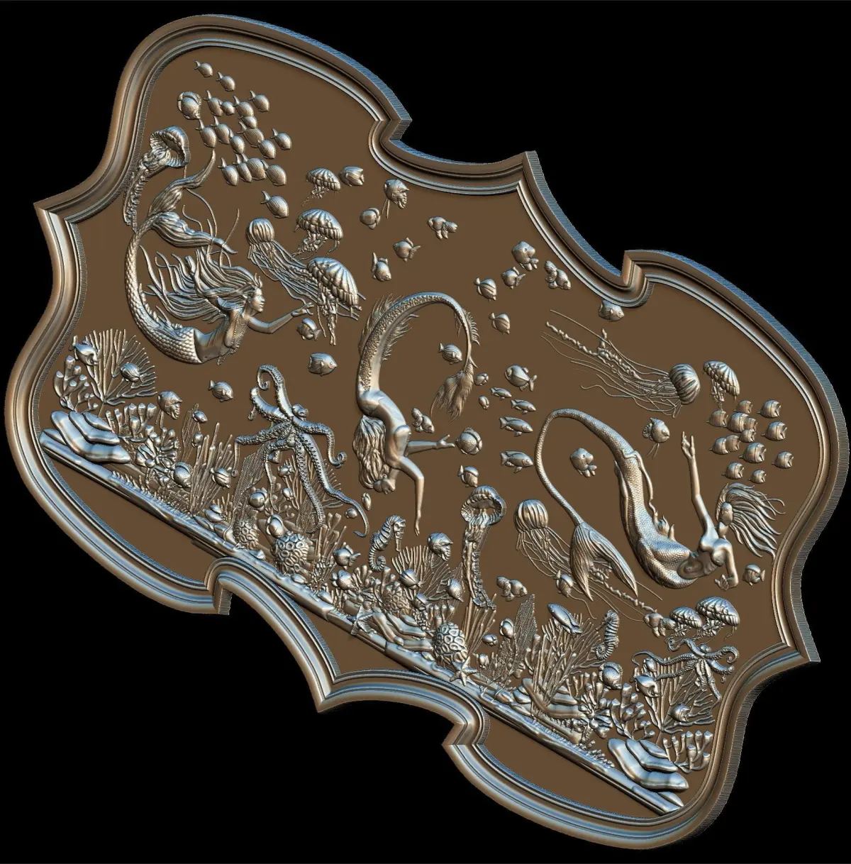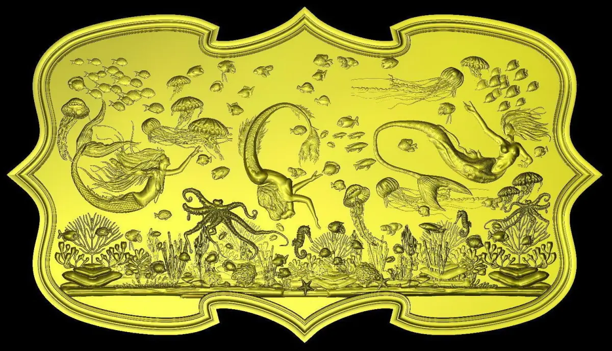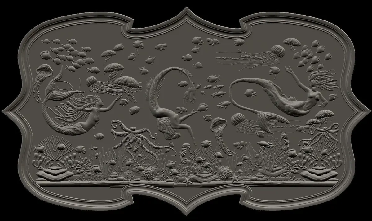 Aquatic Mermaid Theme Panno v2 STL for CNC Relief engraving.
