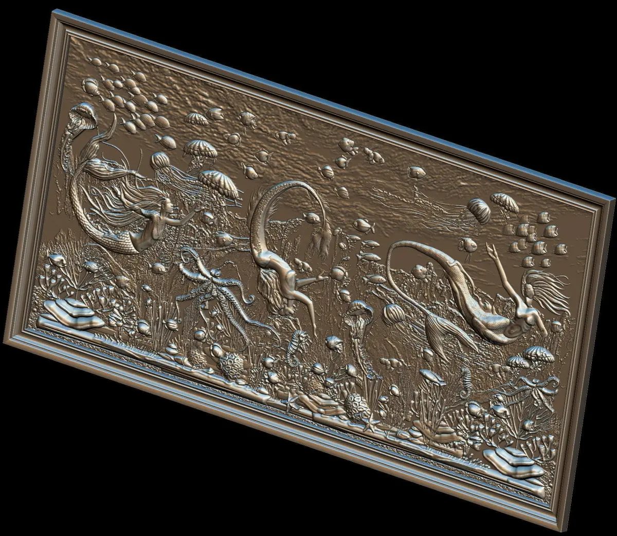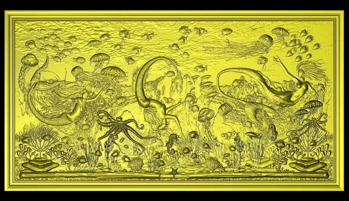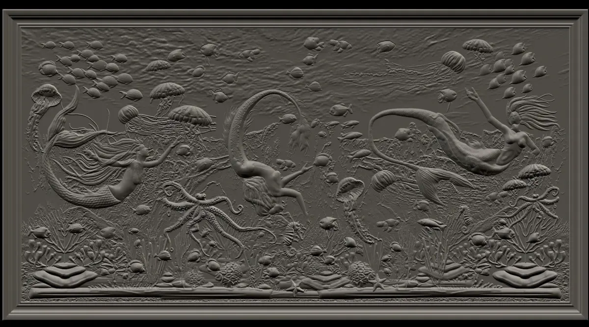 Aquatic Mermaid Theme Panno v5 for CNC Relief engraving.