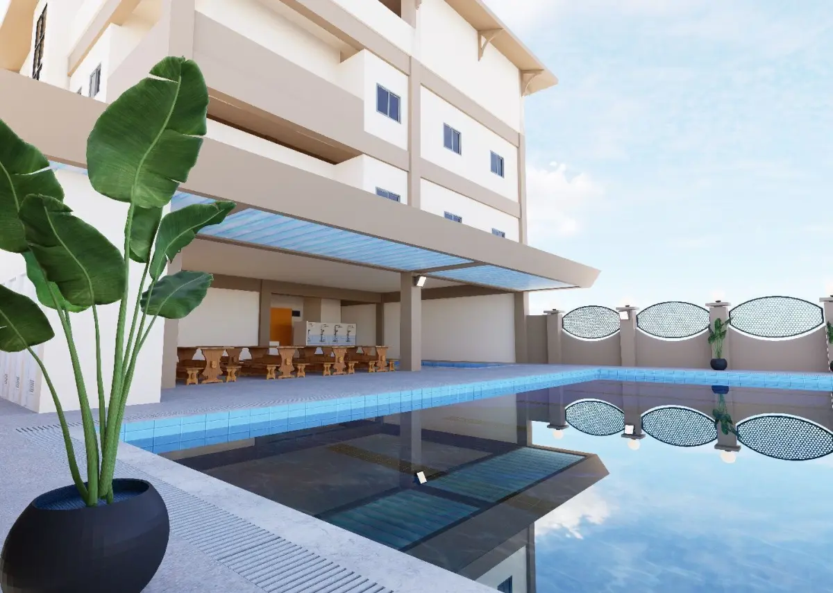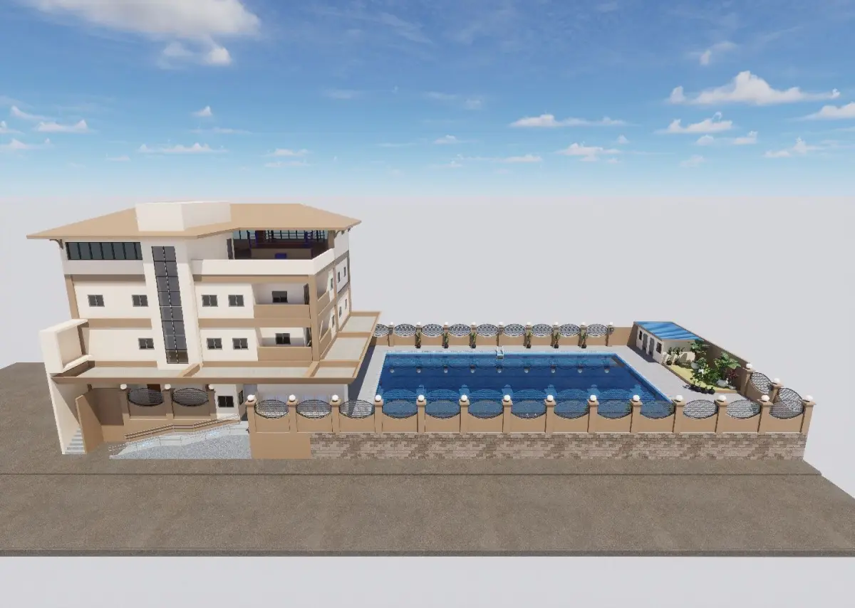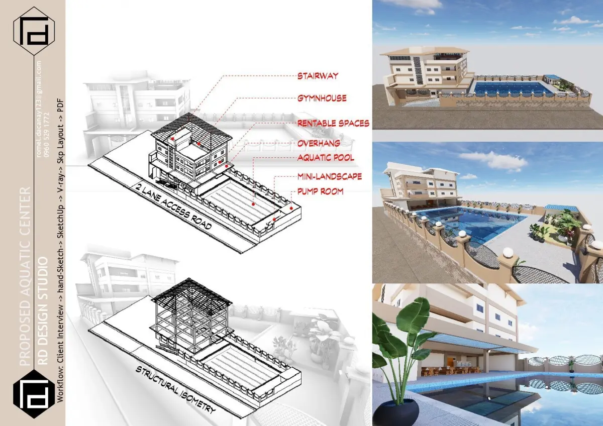 The model is a proposed aquatic pool based from the olympic sized swimming pool (25m x 50.03m), along with a 3 storey gym building.