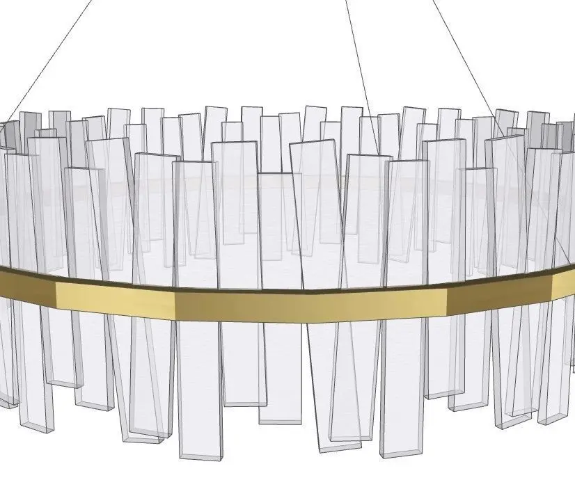Aquitaine Chandelier by COUP Studio. Metal ring and veiled glass bricks. http://coupdetatsf.com/product/aquitaine-chandelier-single-tier/